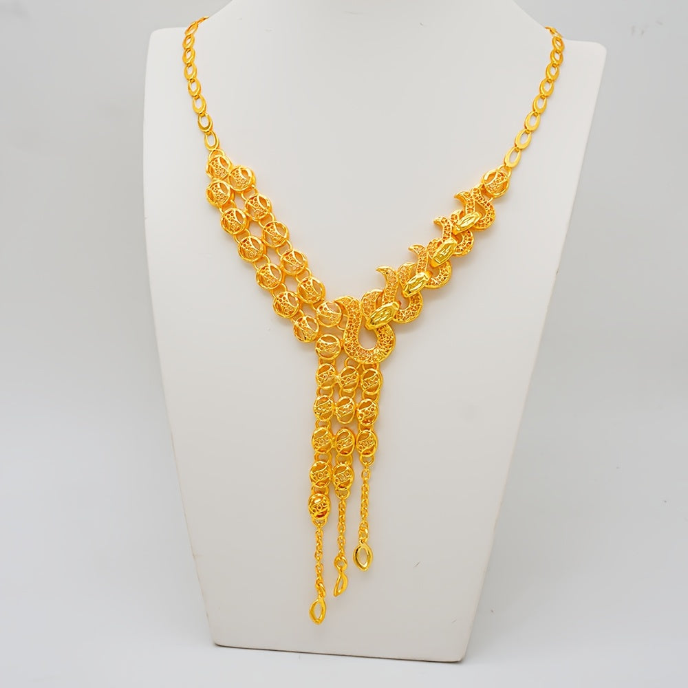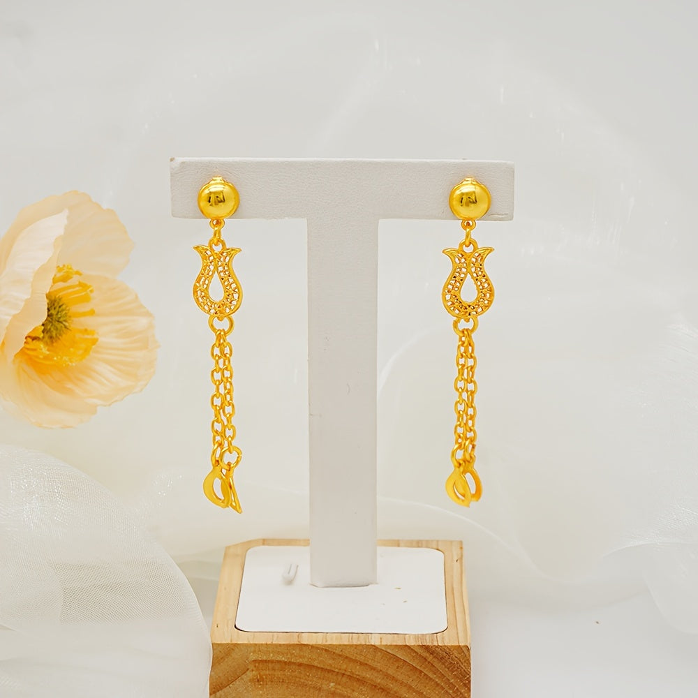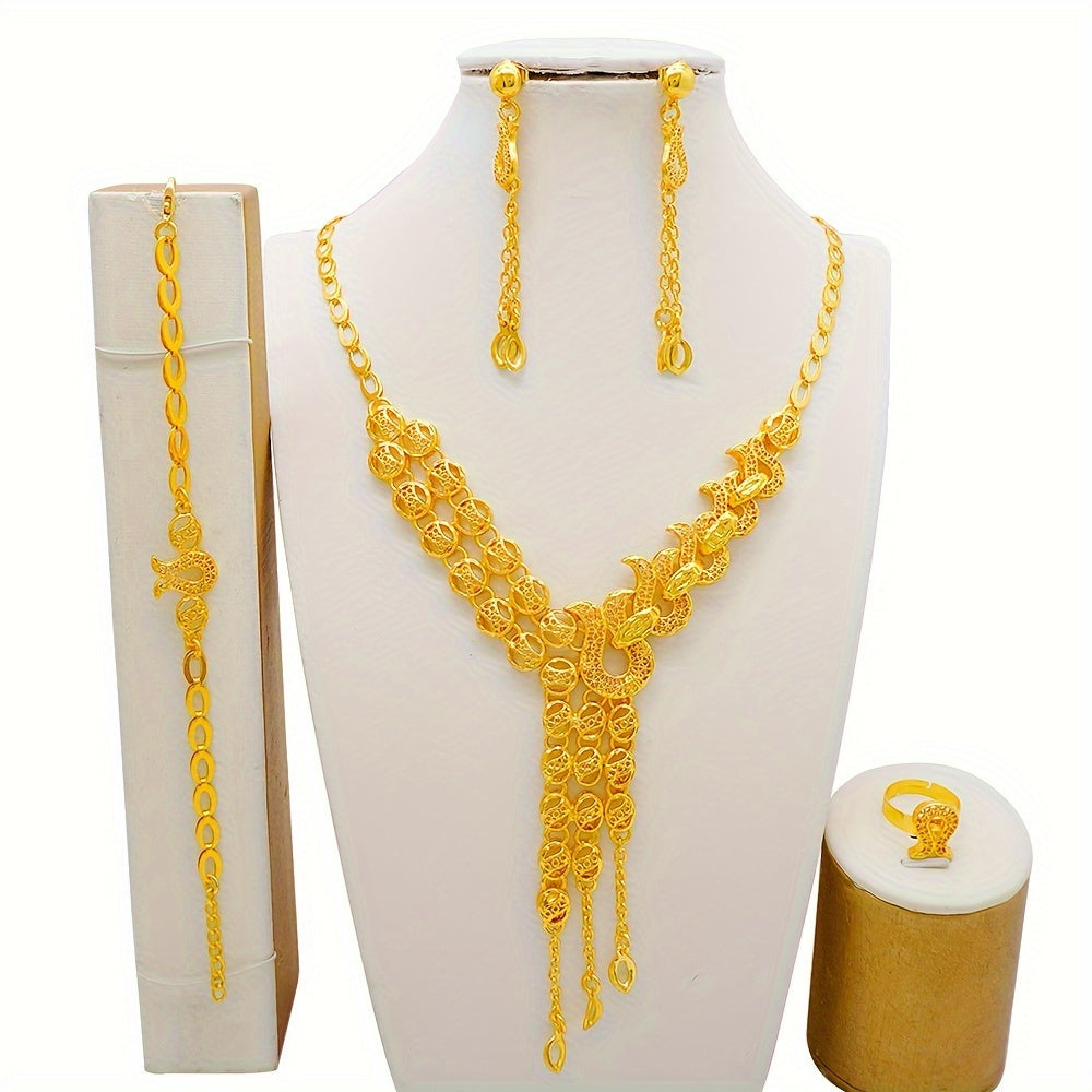 1 Pair Of Dangle Earrings + 1 Necklace + 1 Bracelet + 1 Ring Elegant Jewelry Set 24k Gold Engagement, Wedding Jewelry Evening Party Decor