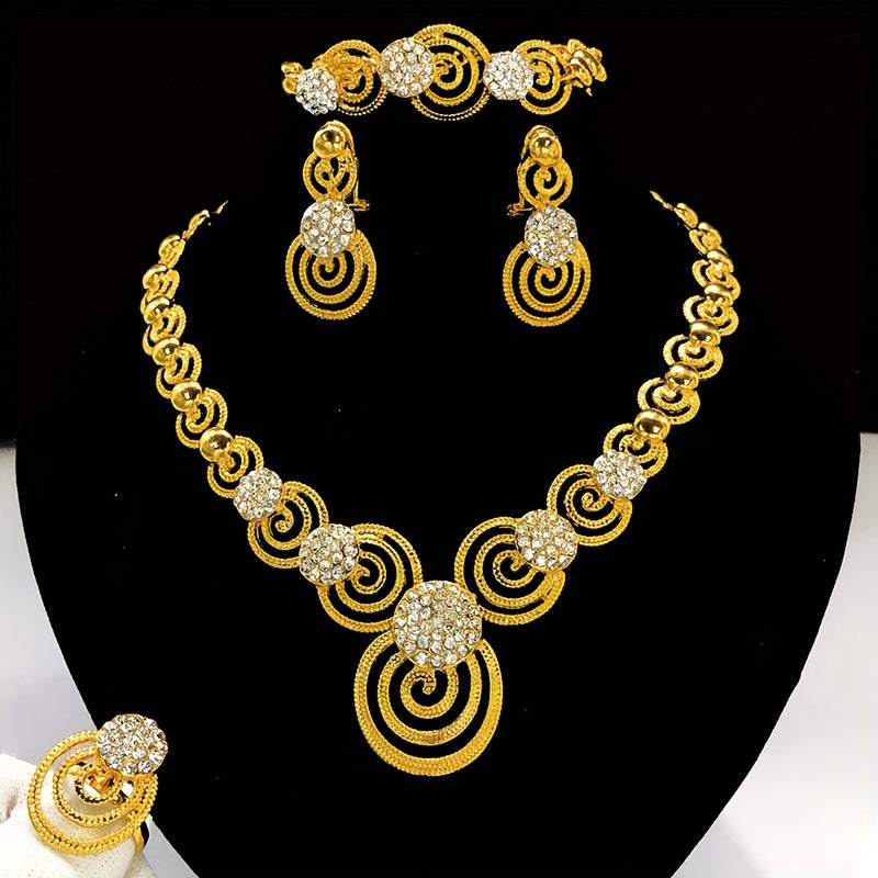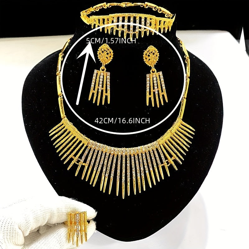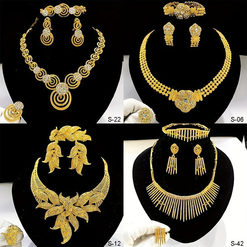 1 Pair Of Earrings + 1 Necklace + 1 Bracelet + 1 Ring Traditional Bridal Jewelry Set 24k Paved Rhinestone Just Pick A Style U Prefer