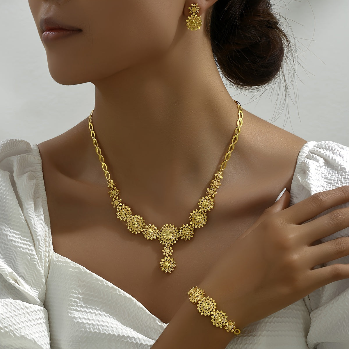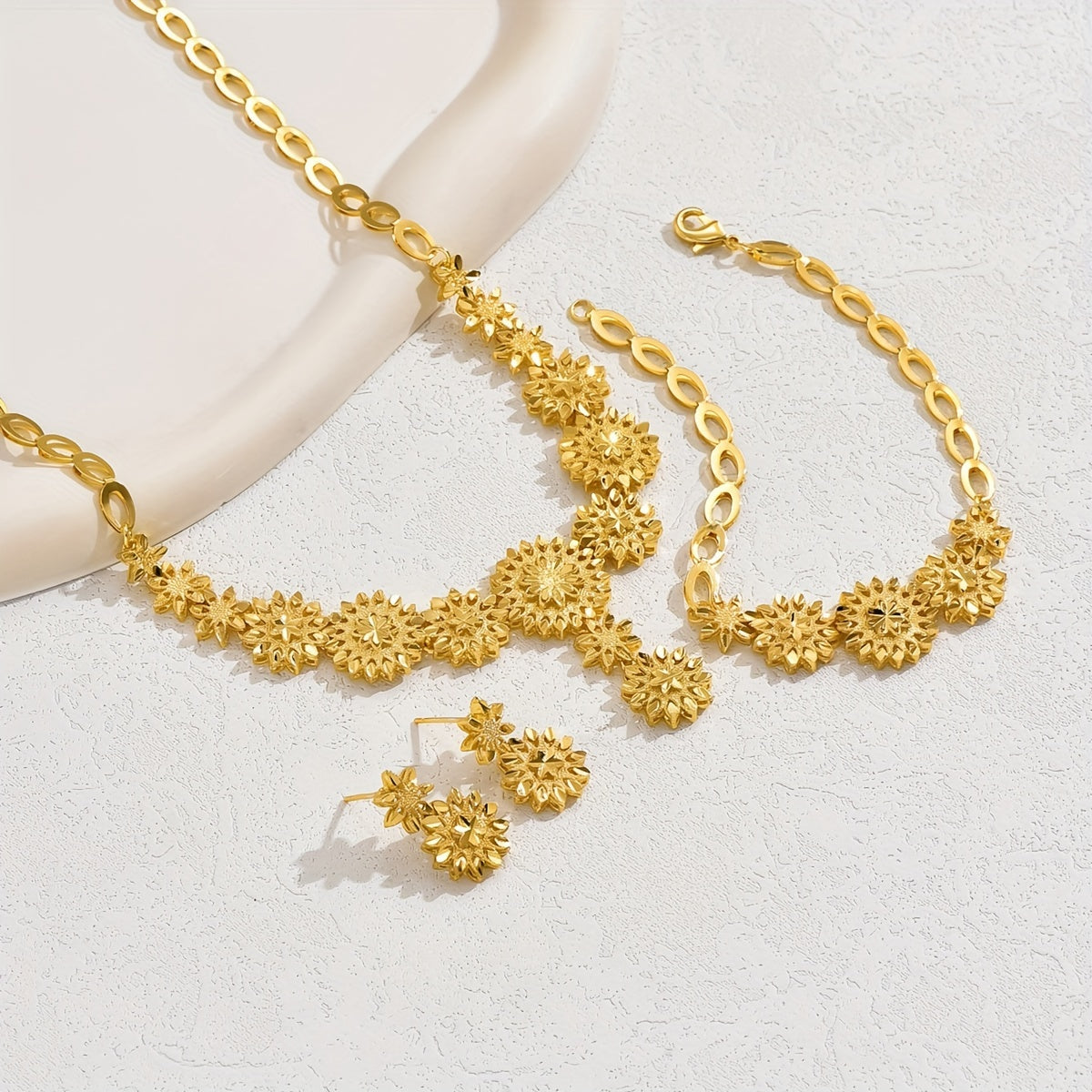 1 Pair of Earrings + 1 Necklace + 1 Bracelet - Exquisite Wheat Design Jewelry Set Symbolizing Fortune and Luck - Elevate Your Daily Style with Elegant Accessories