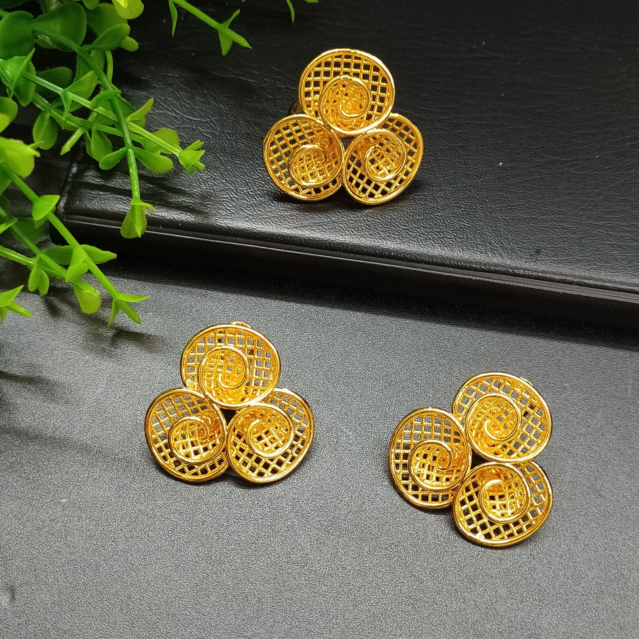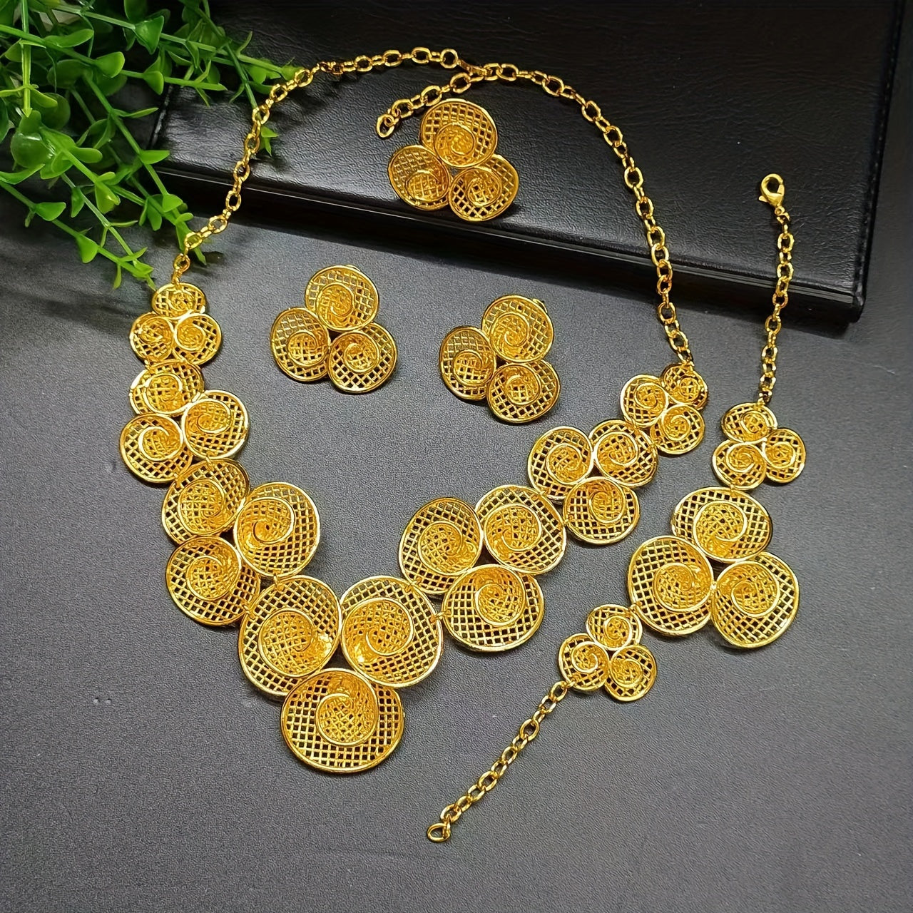 1 Pair Stud Earrings +1 Pc Ring +1 Pc Necklace With Hollow Golden Flower Design Zinc Alloy Jewelry Set Creative Female Wedding Gift