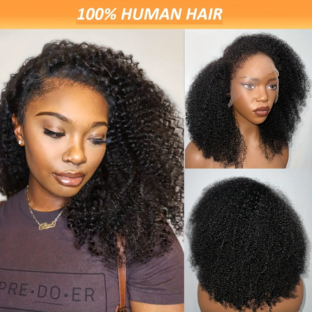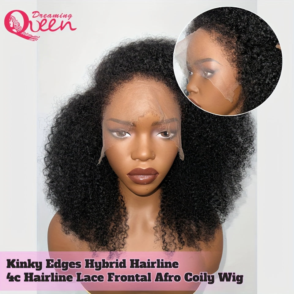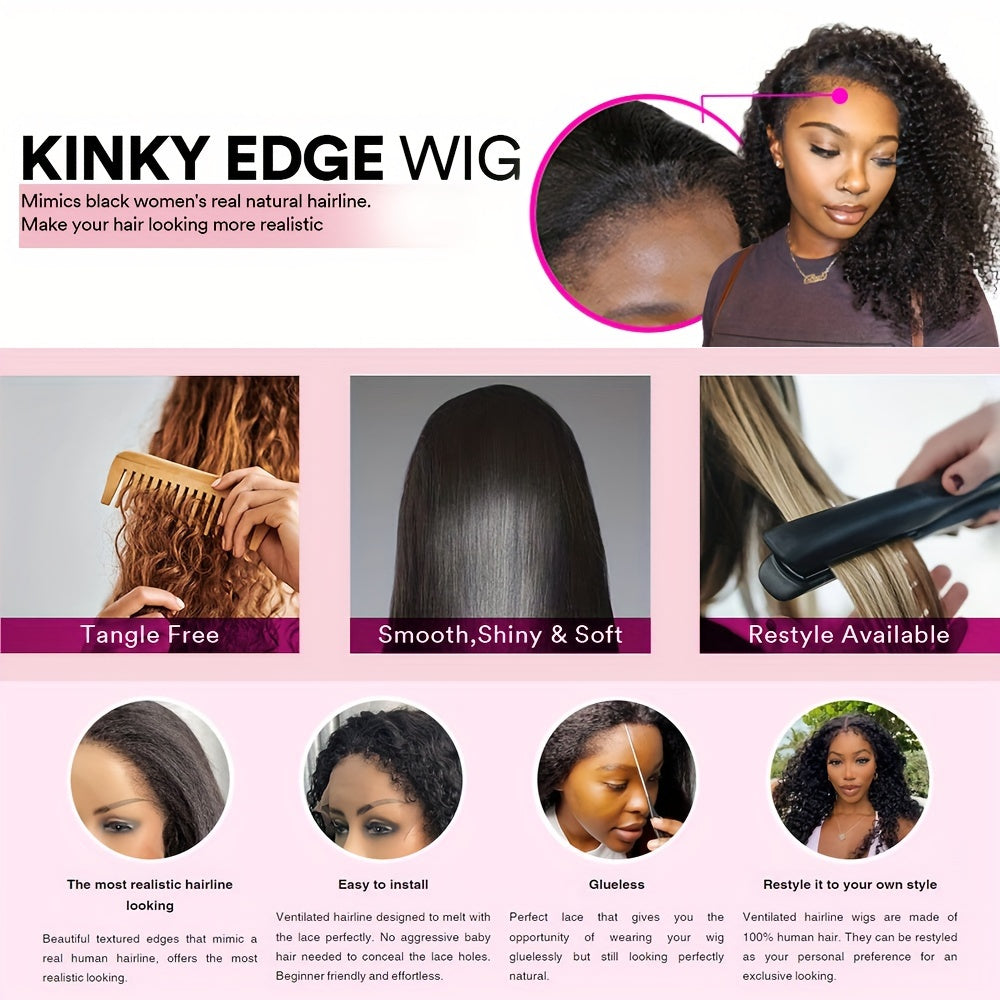 13x4 Deep Curly Lace Front Wig - Kinky Edges, Ventilated Afro Kinky Coily Hair, 180% Density, HD Transparent Lace, Natural Looking, Comfortable, Breathable, and Long-Lasting Hair Replacement Solution for Women