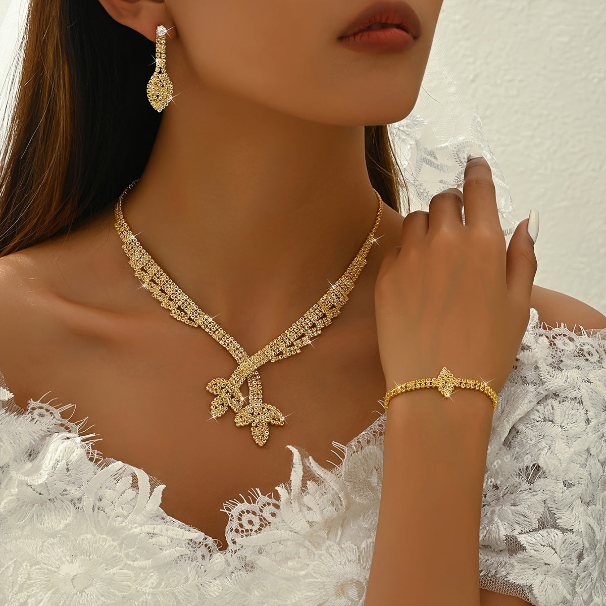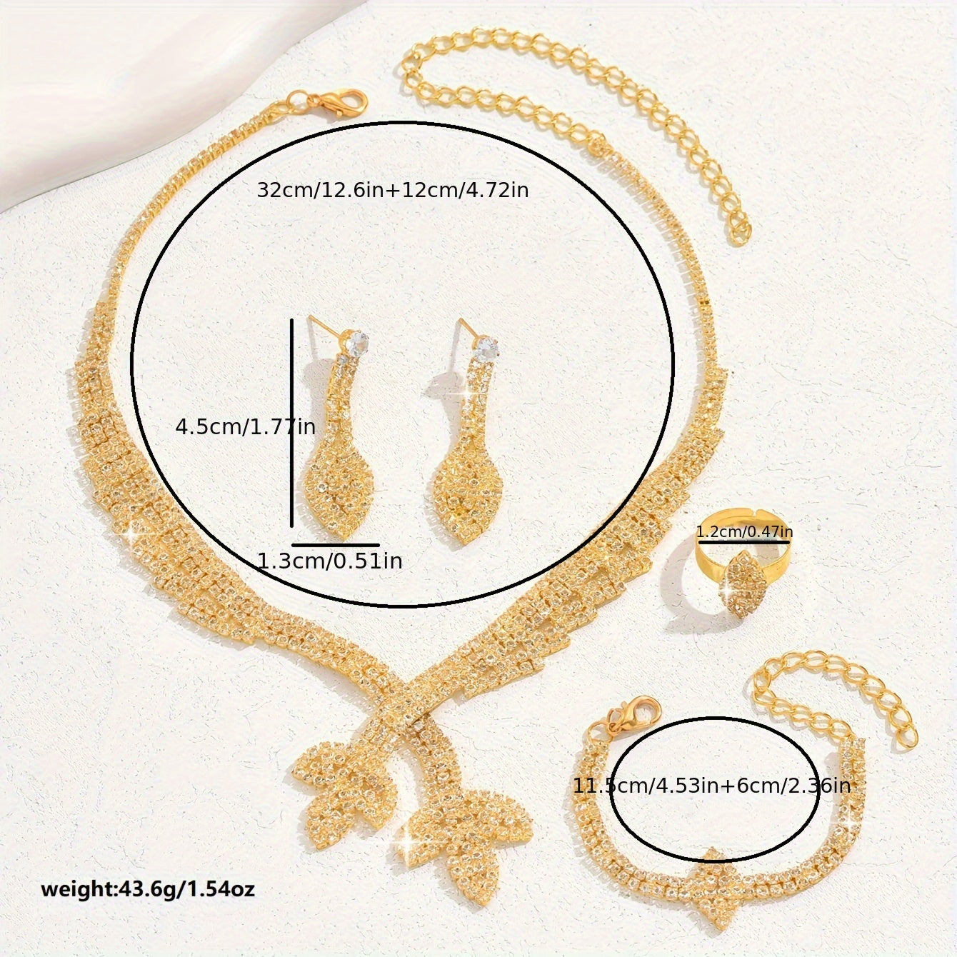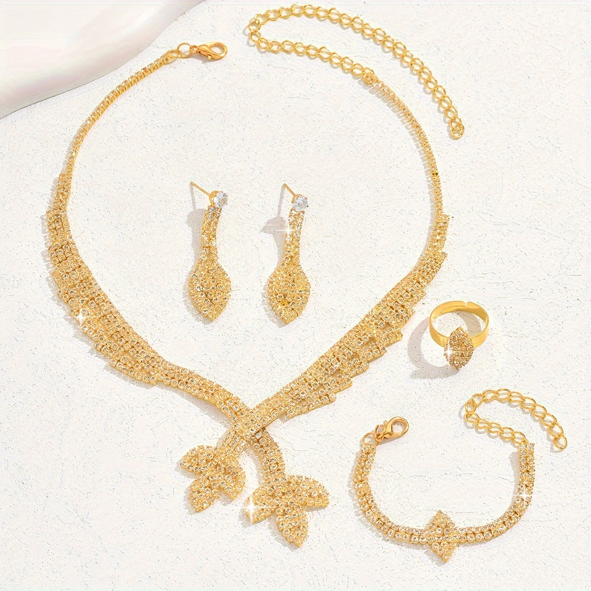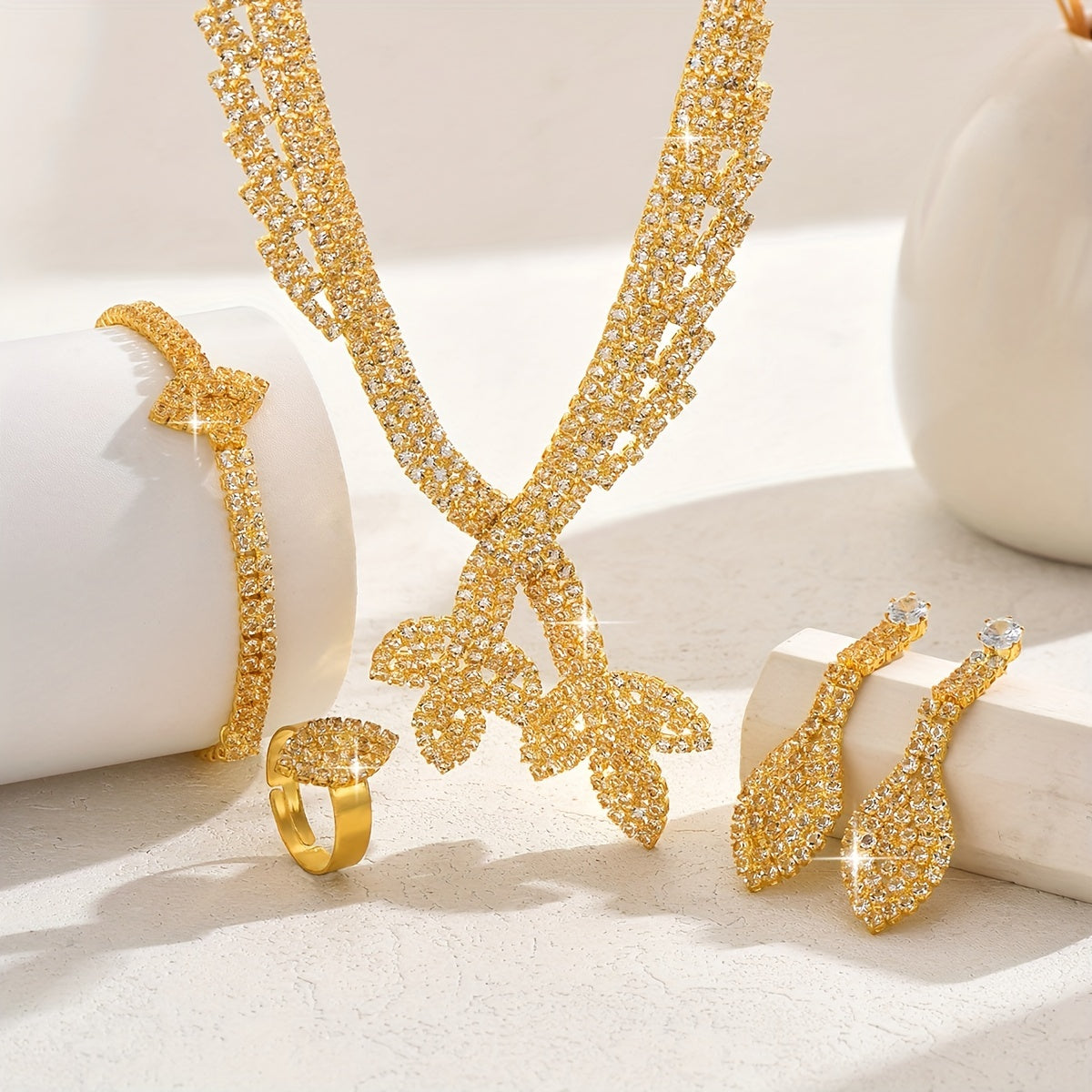 18K Gold Luxury Bridal Jewelry Set - Elegant Zircon Mosaic Copper Necklace, Earrings, Ring, and Bracelet Ensemble for Wedding and Gift-Giving Occasions