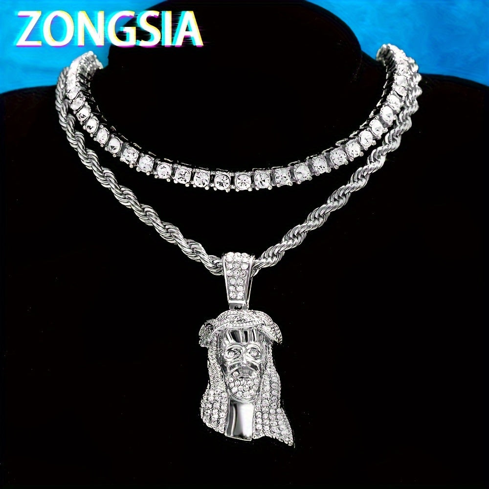 1pc Hip Hop Punk Portrait Pendant Chain Necklace Men Women, With Tennis/Rope Chain, Stylish Jewelry