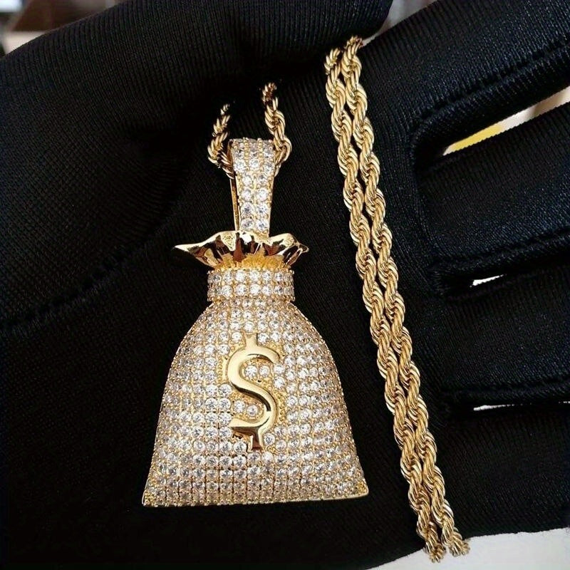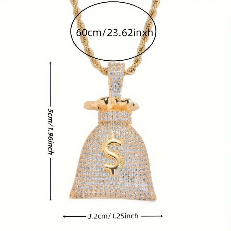 1pc Sparkling Rhinestone Money Bag Pendant Necklace - Chic & Dazzling Jewelry, Symbol of Wealth and Fortune