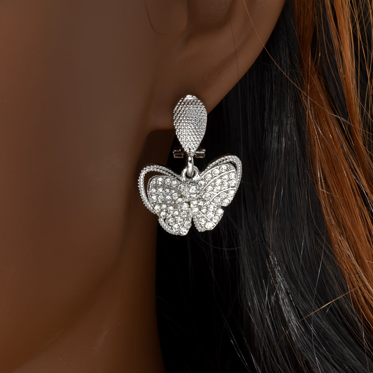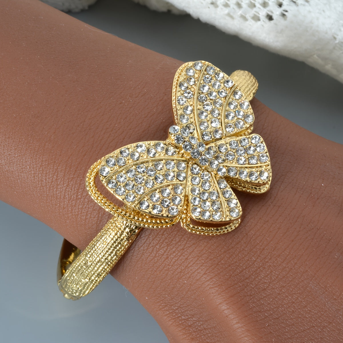 1set Statement Style Copper Golden Jewelry For Women, Necklace + Bangle + Ring + Earrings Four Piece Golden Silver Butterfly Pendant Jewelry Set Perfect For Women Wedding Party Birthday Gift