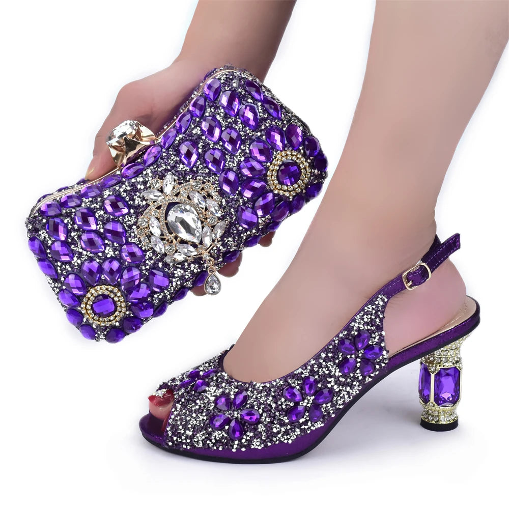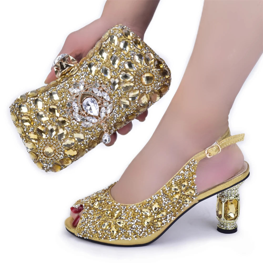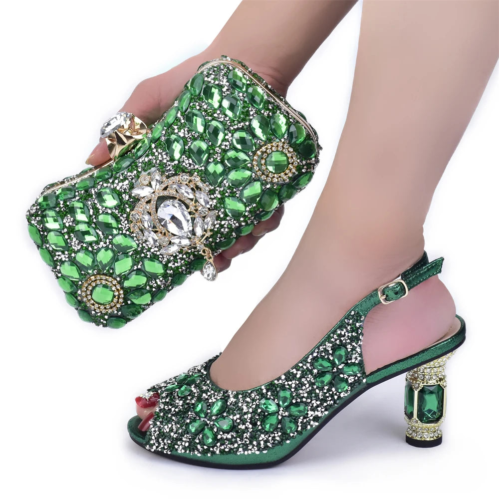 2022 Italian Rhinestone Bridal Heels Bag Set