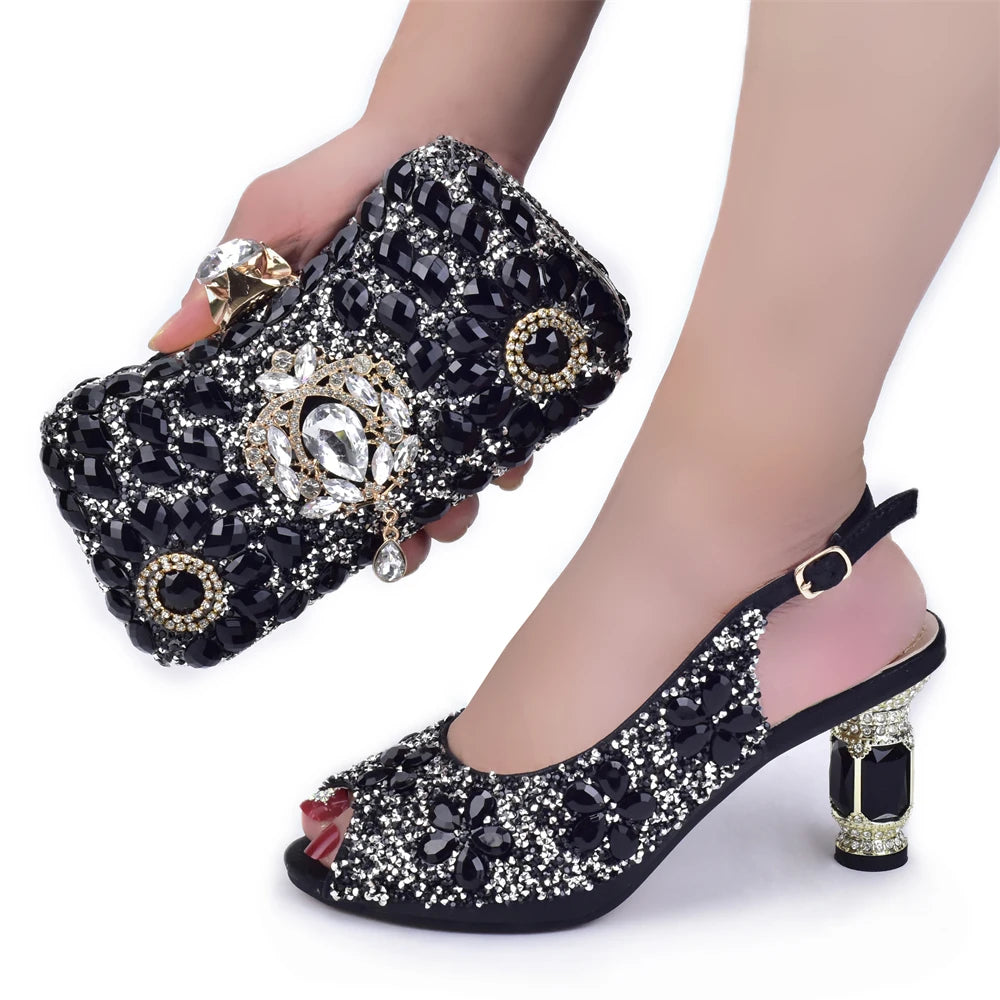 [💎 Sparkly Vibes] - These heels and bag combo is bedazzled with rhinestones, making sure you shine brighter than a disco ball at every event.