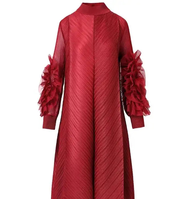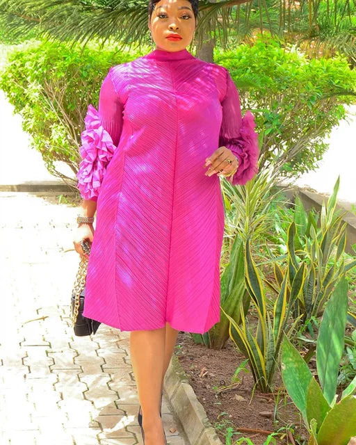 2022 Spring Autumn African Women Long Sleeve O-neck Polyester Solid Color Knee-length Dress L-5XL African Clothes Without Belt