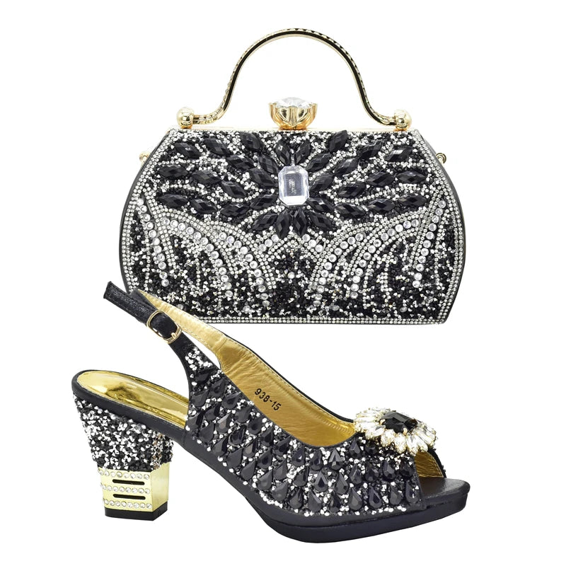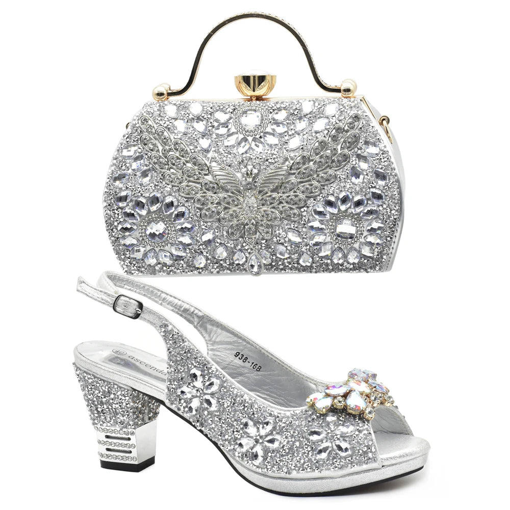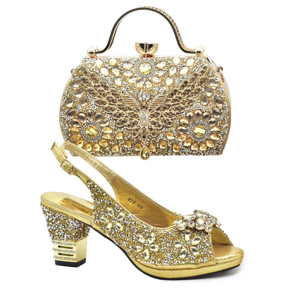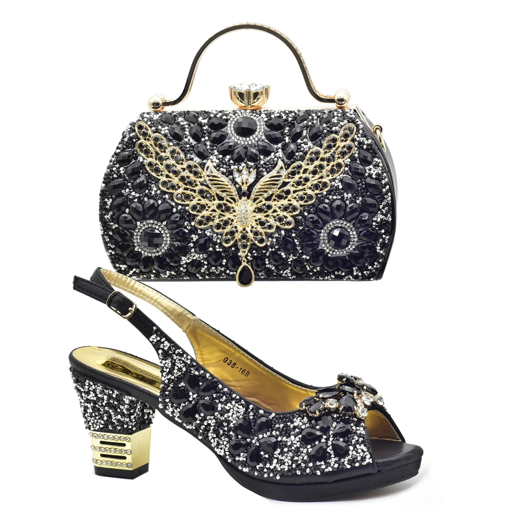 2023 Wedding Shoes Bride Italian Shoes and Bags Matching Set Decoated with Rhinestone Africa Shoe and Bags Set Platform Shoes