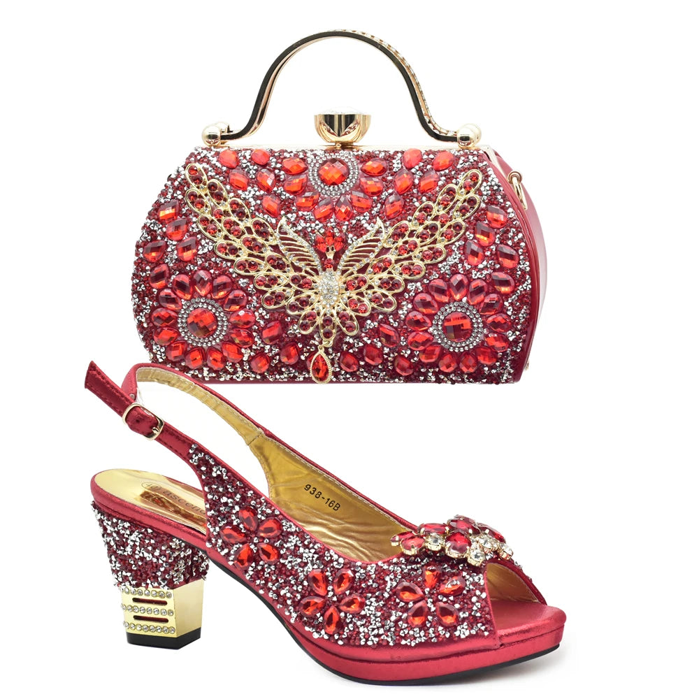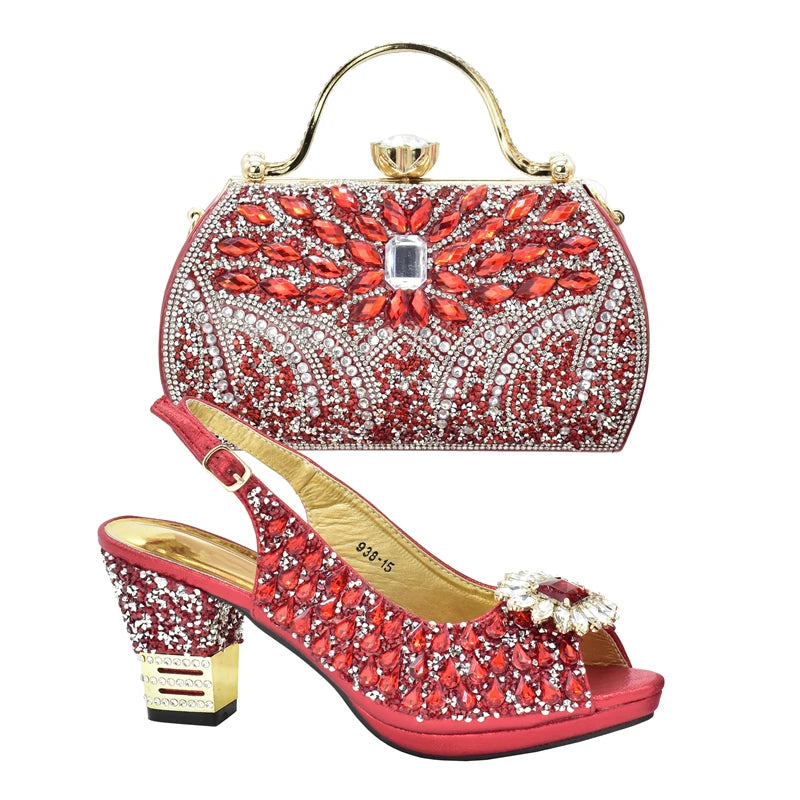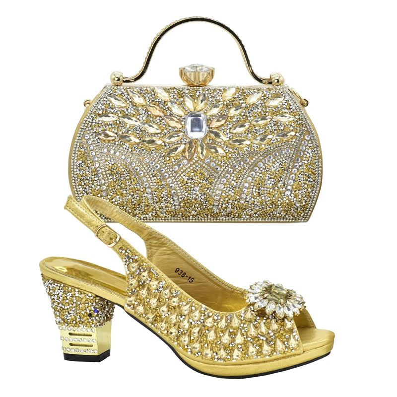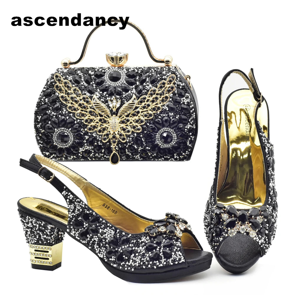2023 Wedding Shoes Bride Italian Shoes and Bags Matching Set Decoated with Rhinestone Africa Shoe and Bags Set Platform Shoes