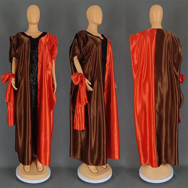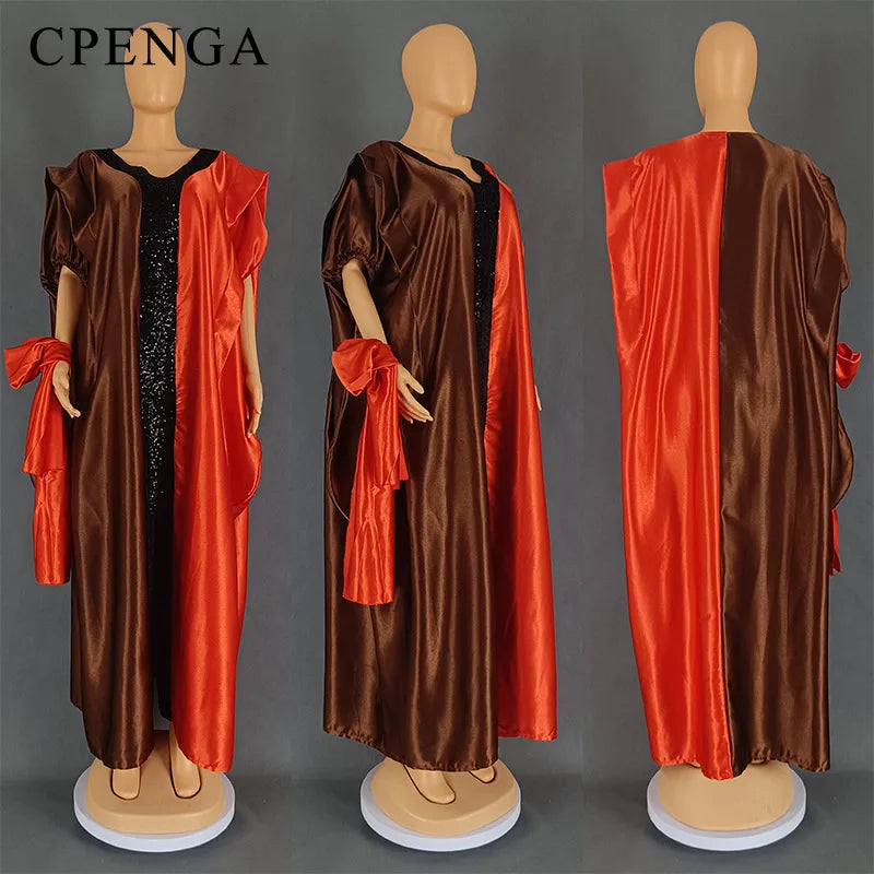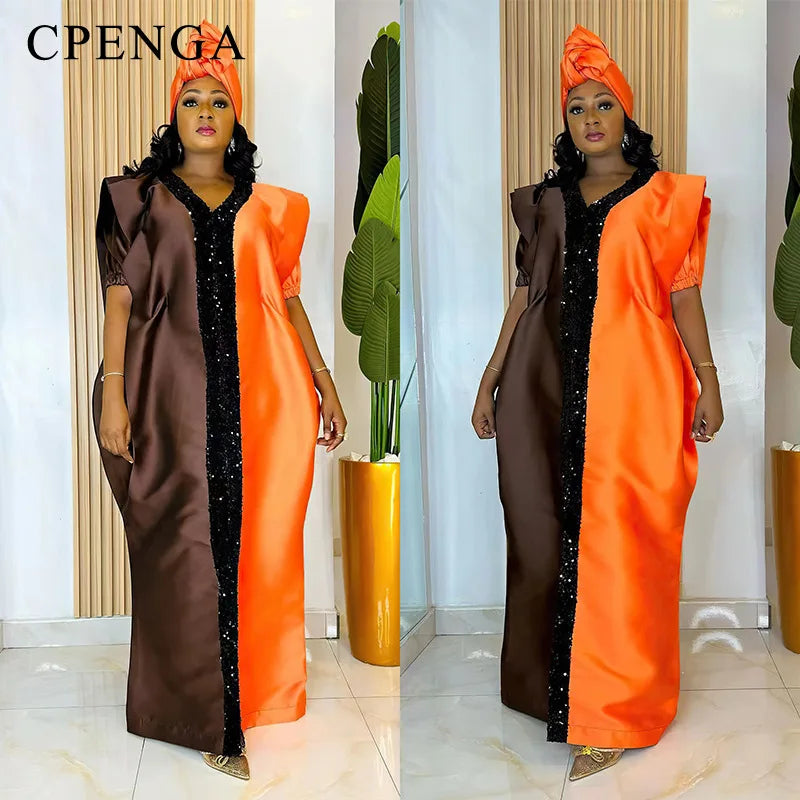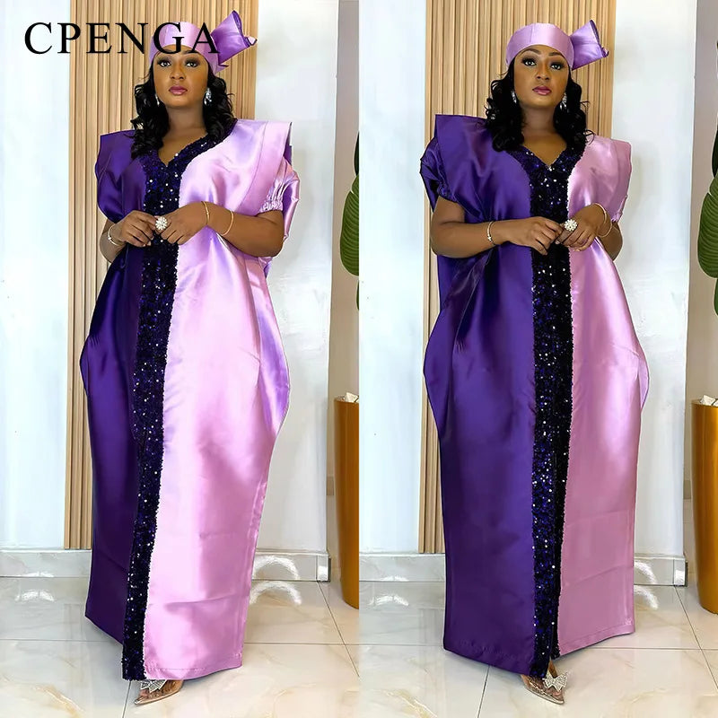 2024 Plus Size African Dress for Women with Headtie Traditional Nigerian Maxi Clothing Elegant Party Kaftan Islam Muslim Robe
