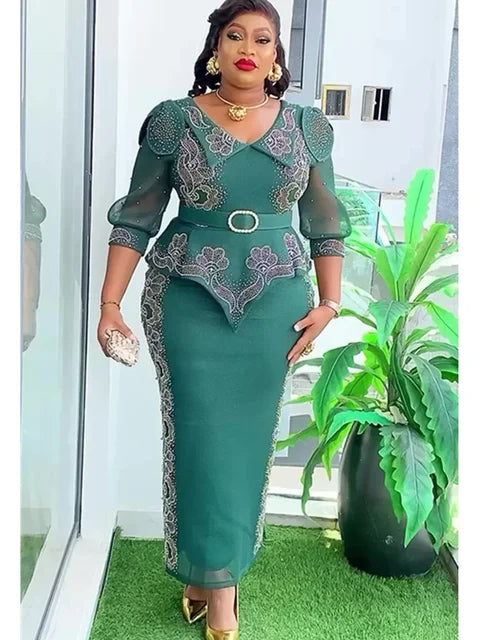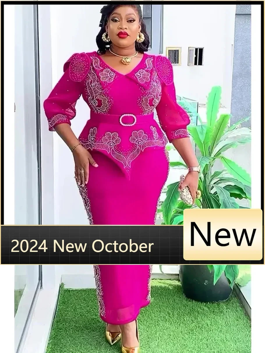 2025 Elegant African Dresses for Women Africa Clothing Plus Size Wedding Party Long Christmas Dress Dashiki Ankara Outfits Robe
