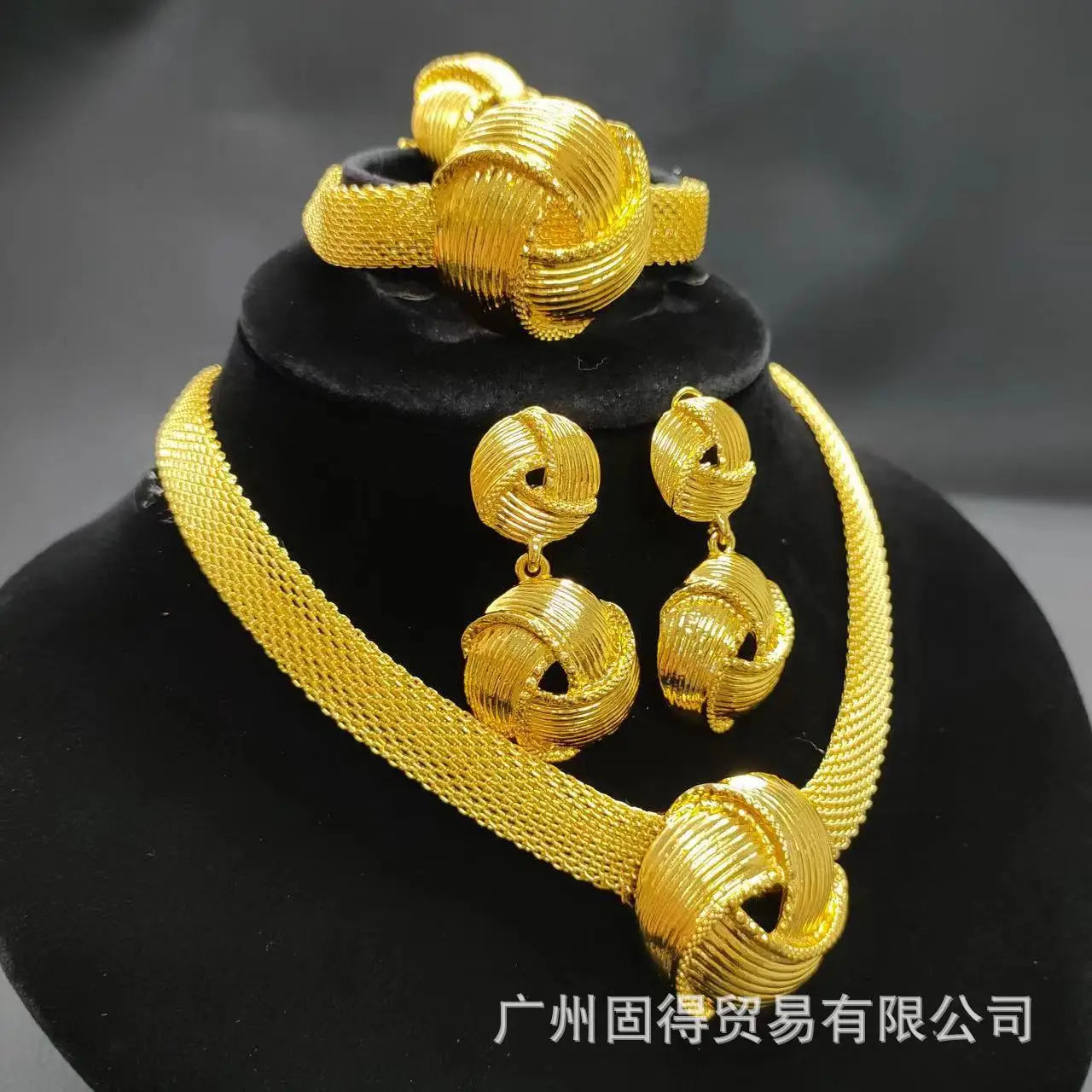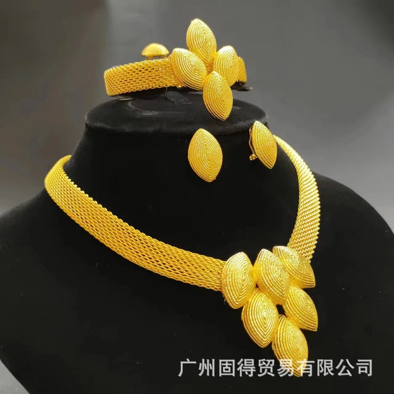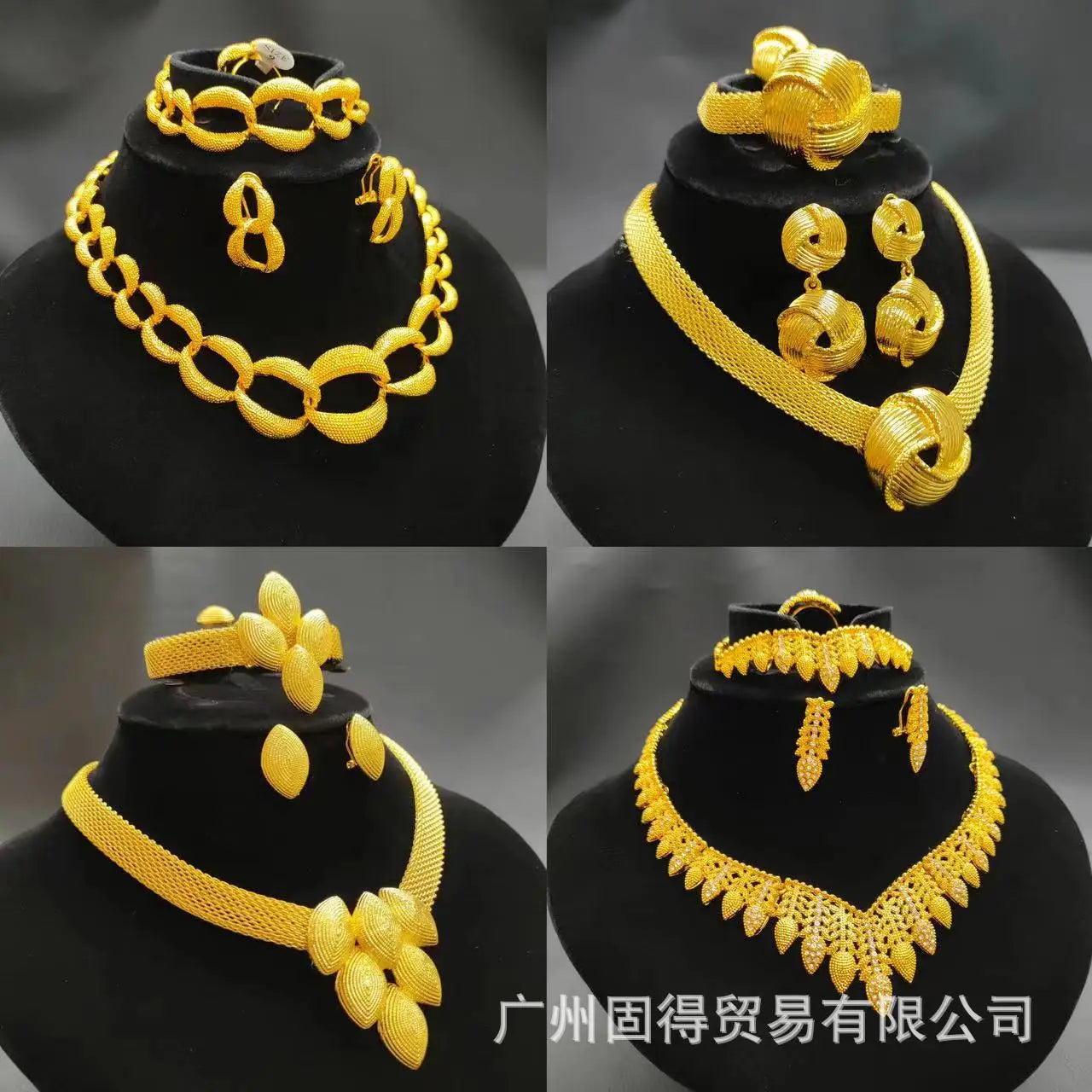 24k gold-plated necklace, earrings, ring, bracelet set, Middle East Dubai, India, Nigeria bride chain set