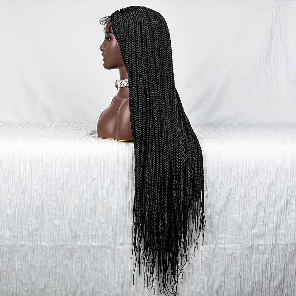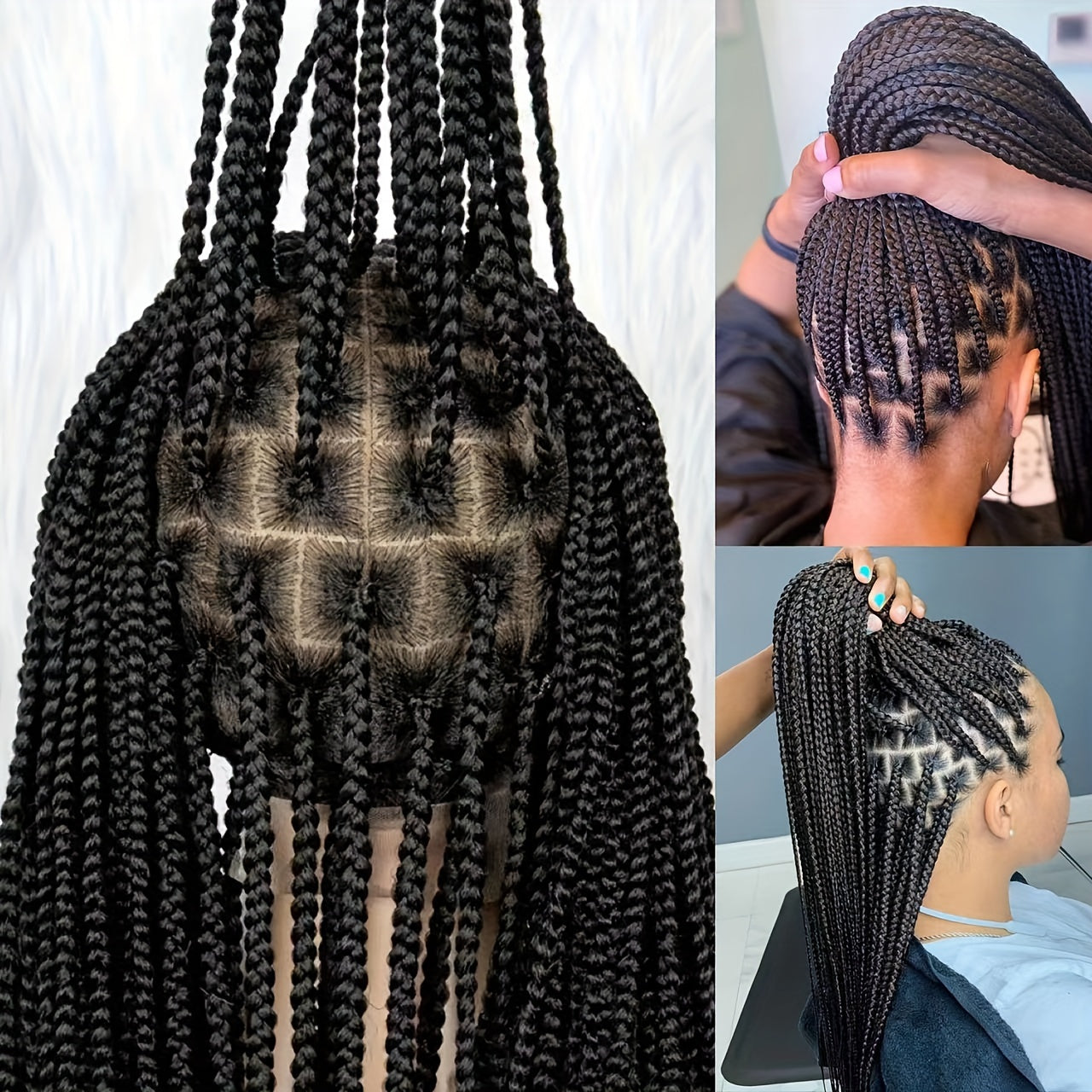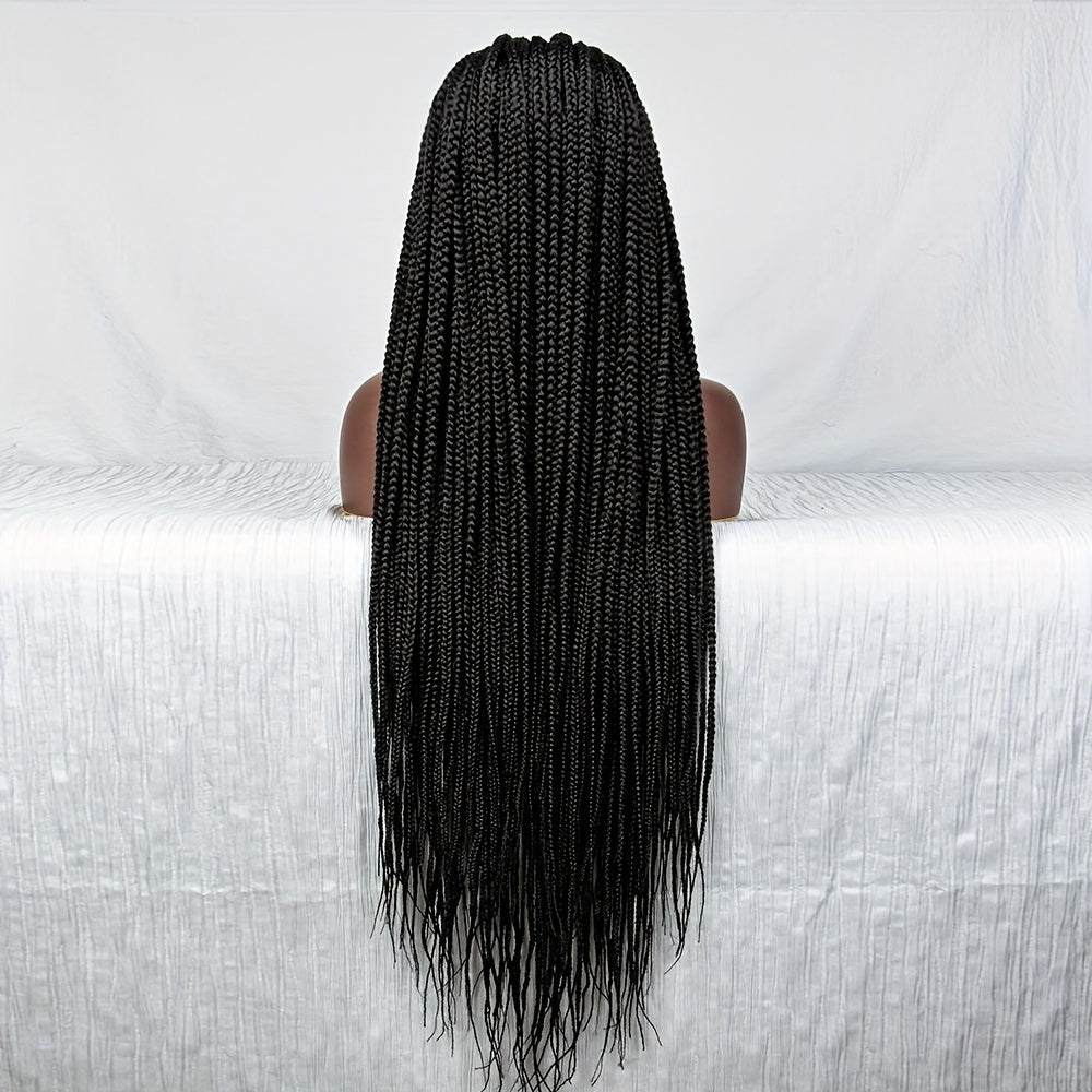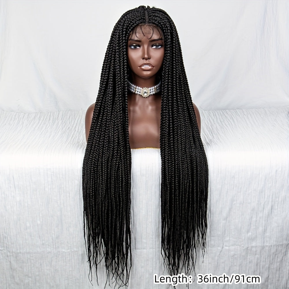 36 Inch Long Synthetic Full Lace Braided Wig - Knotless Box Braids, Cornrow Style, Transparent Lace, Realistic Hairline, Soft and Breathable, Easy to Install and Style