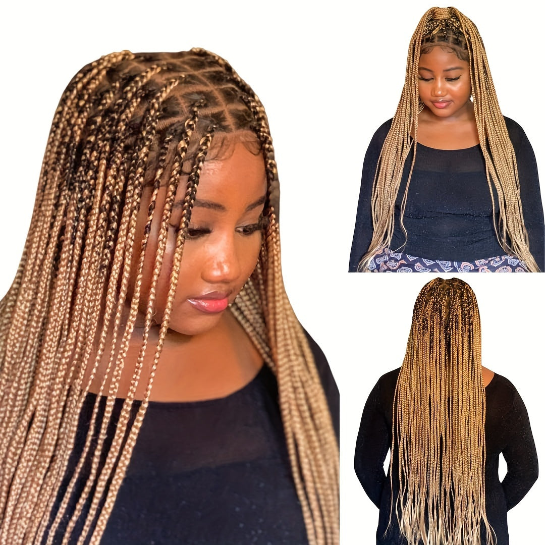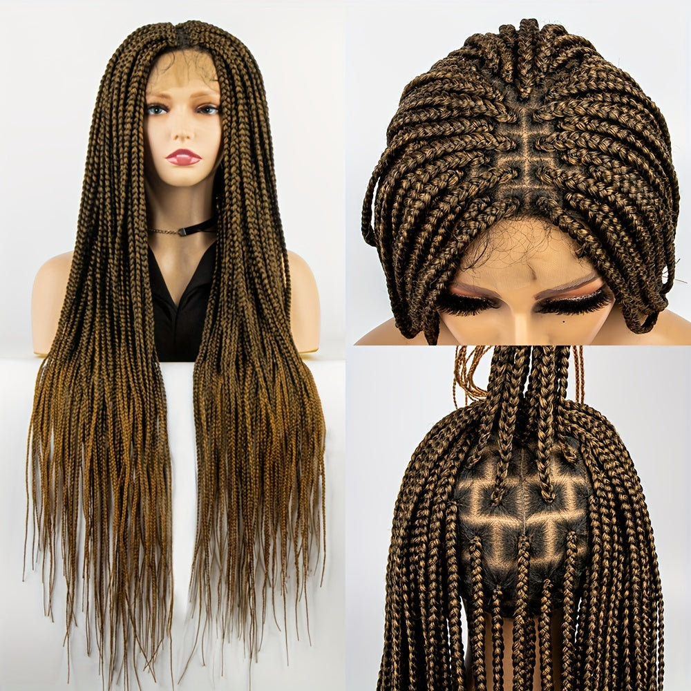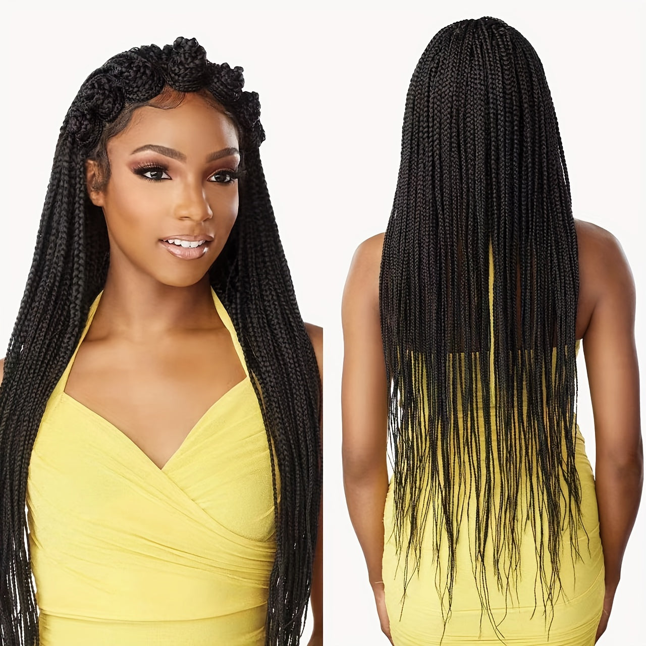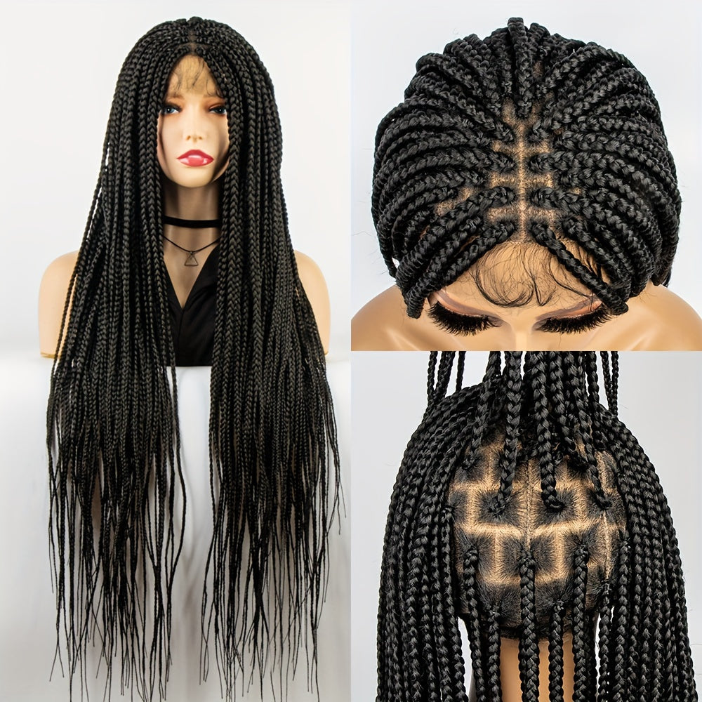 36 Inch Long Synthetic Full Lace Braided Wig - Knotless Box Braids, Cornrow Style, Transparent Lace, Realistic Hairline, Soft and Breathable, Easy to Install and Style