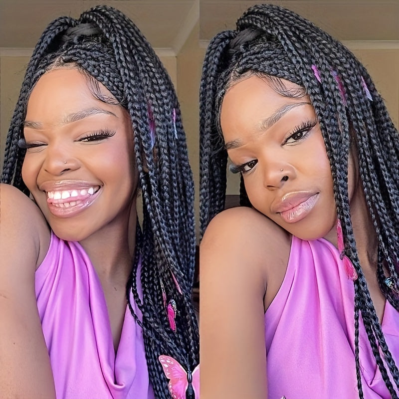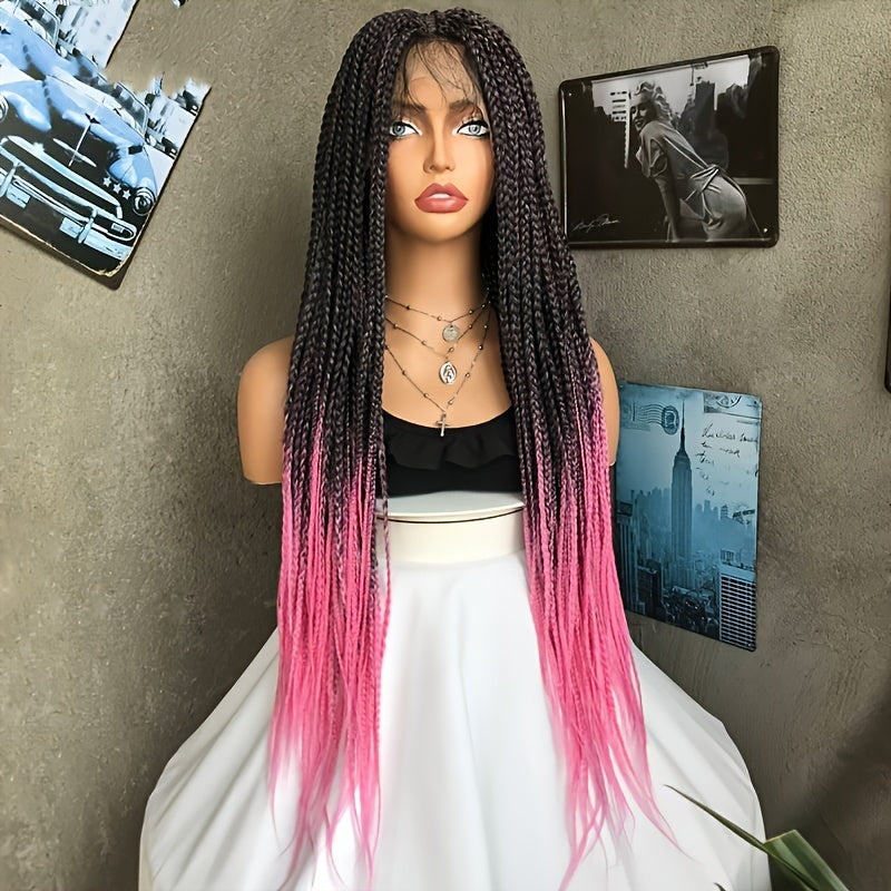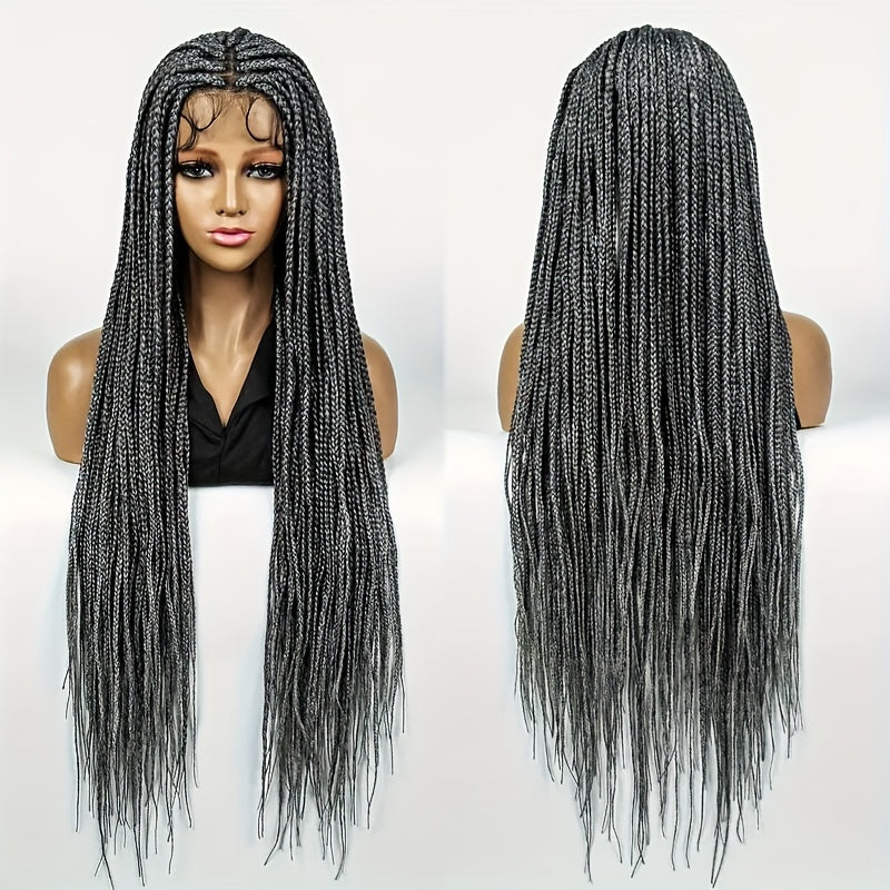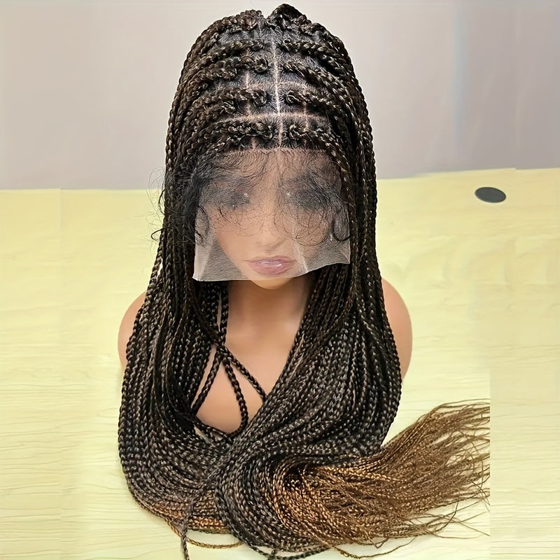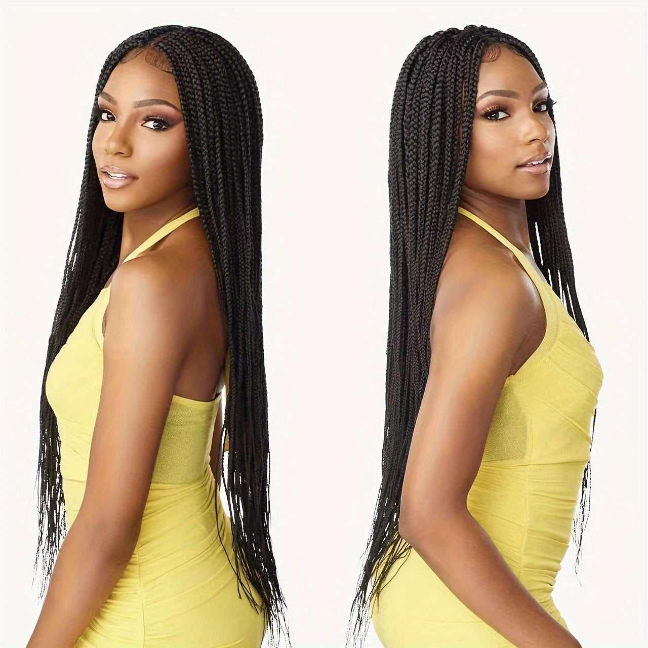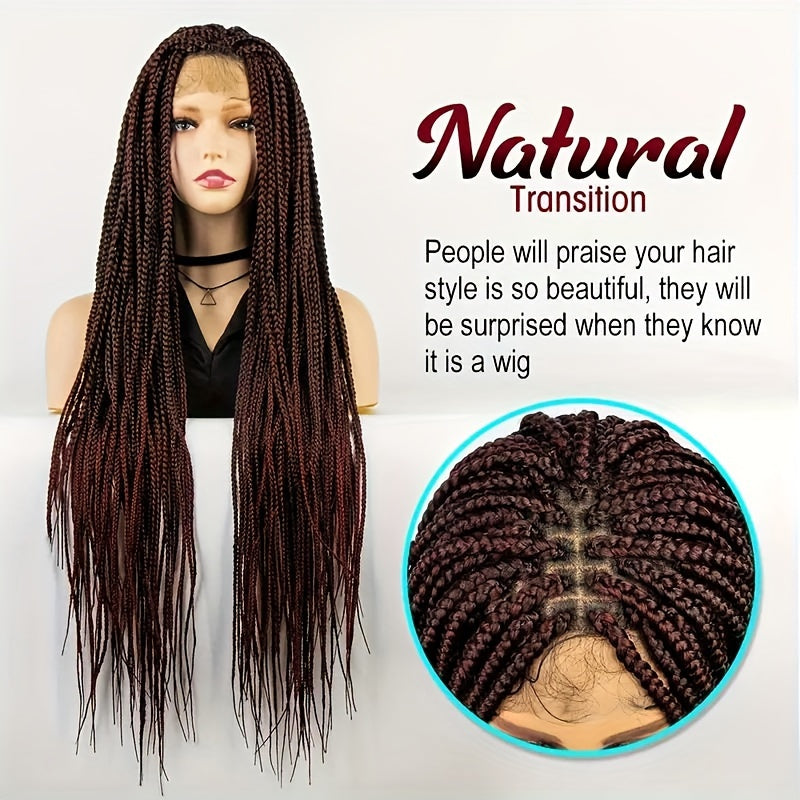 36 Inch Long Synthetic Full Lace Braided Wig - Knotless Box Braids, Cornrow Style, Transparent Lace, Realistic Hairline, Soft and Breathable, Easy to Install and Style