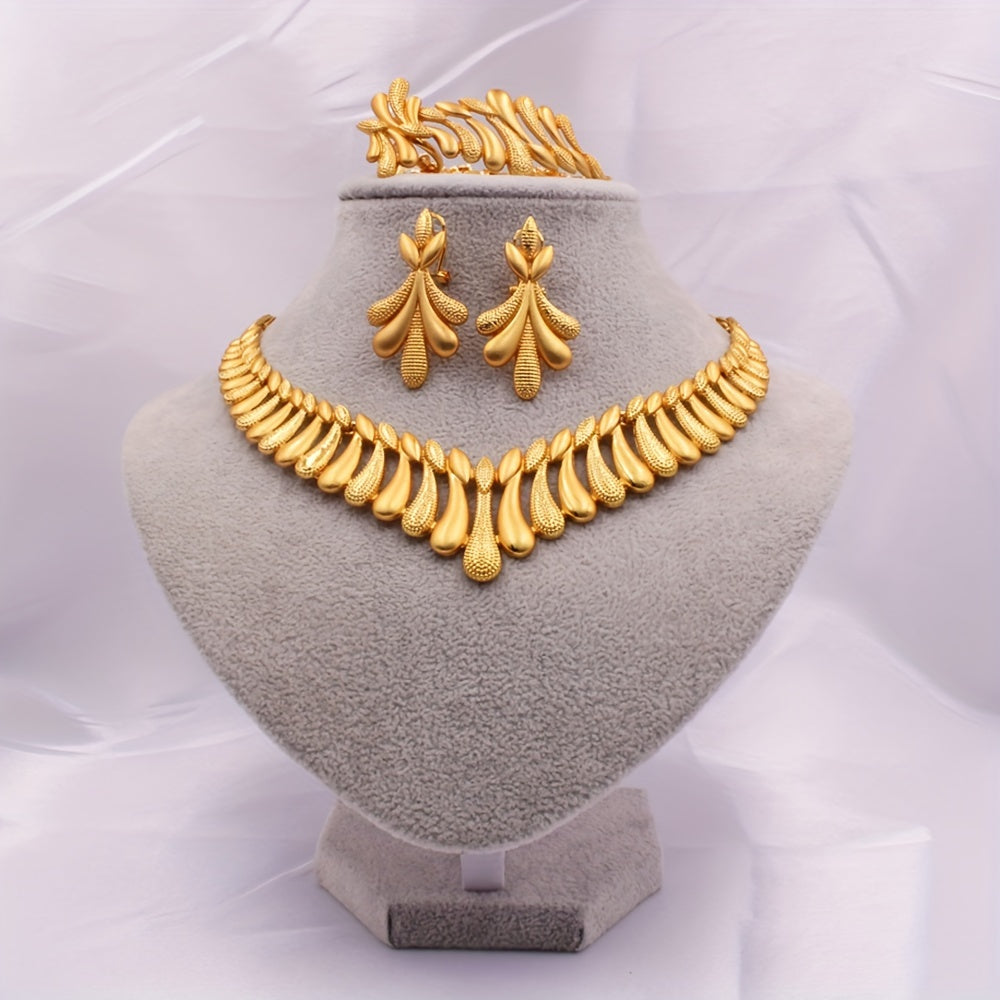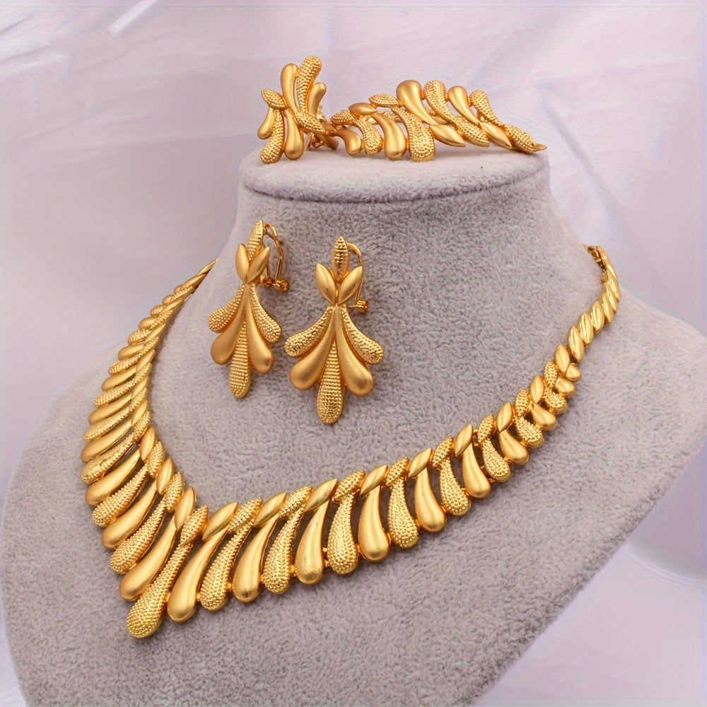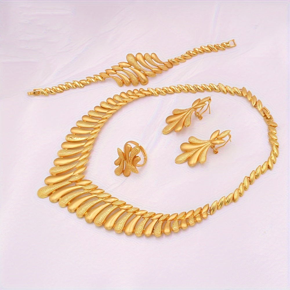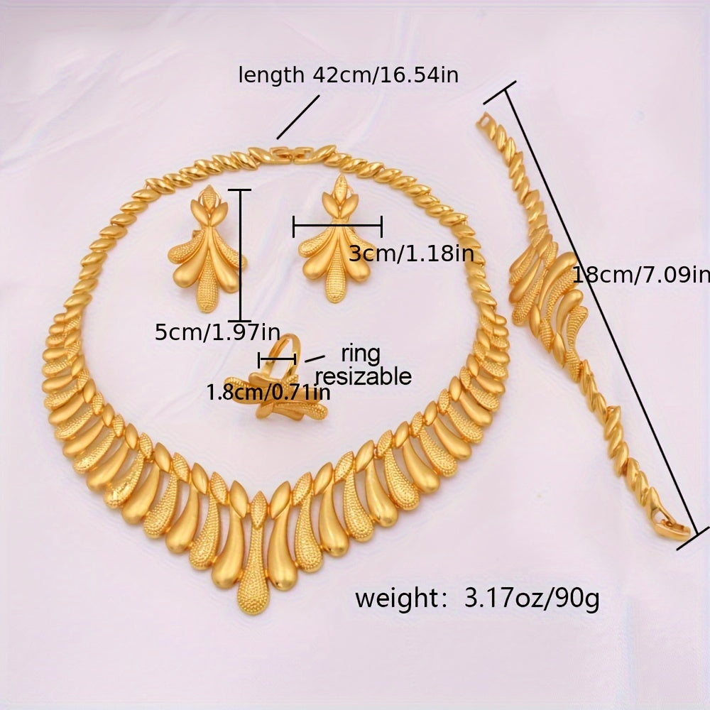 4-Piece Plated Jewelry Set, Middle Eastern Dubai Style Wedding Accessories, Luxurious African Bridal Necklace, Bracelet, Earrings, And Ring Set For Women GIfts For Eid