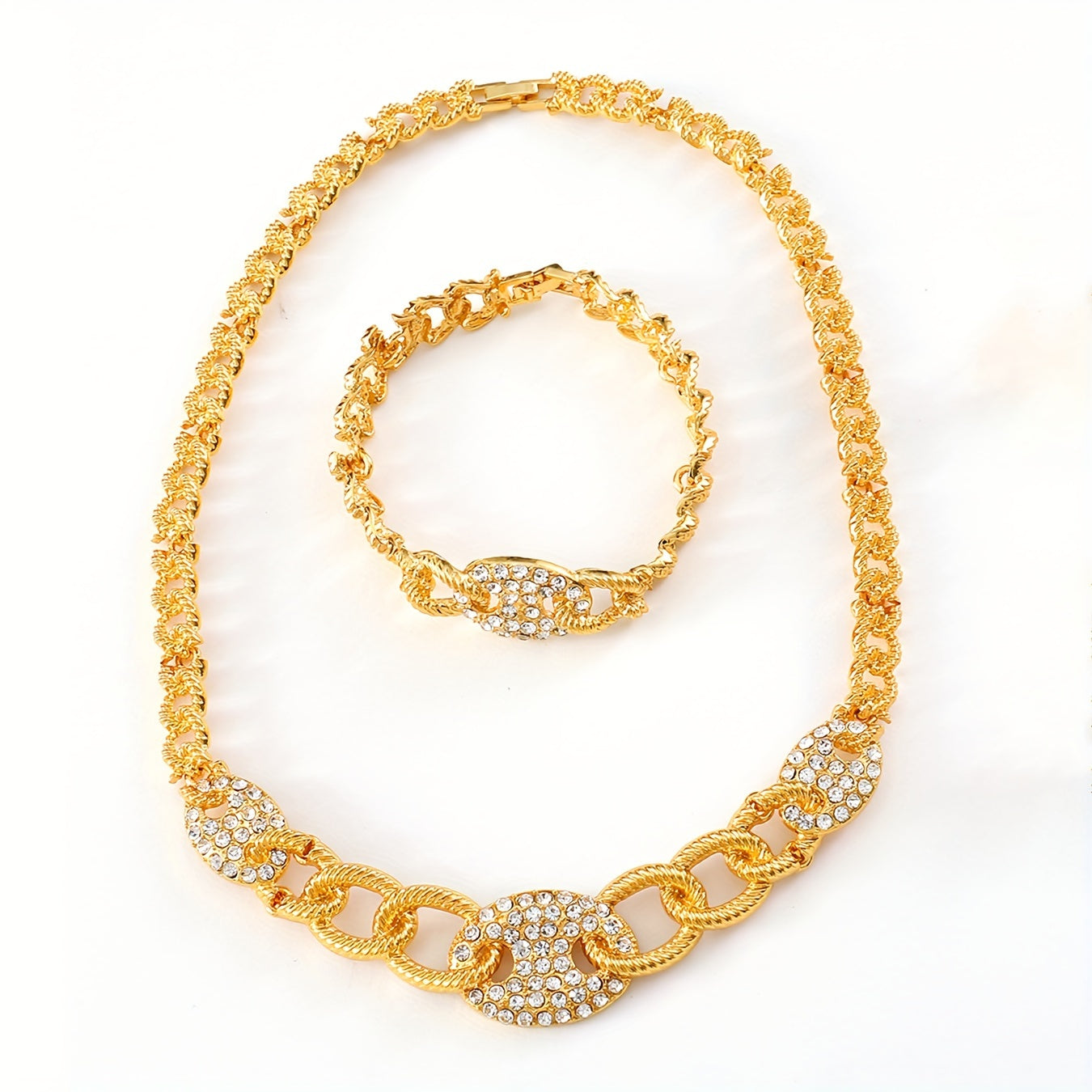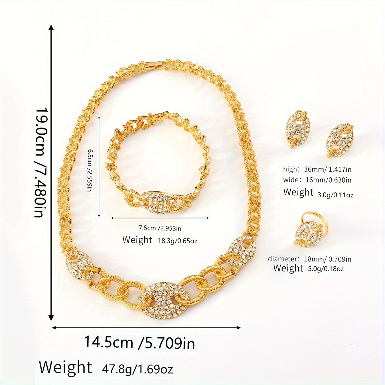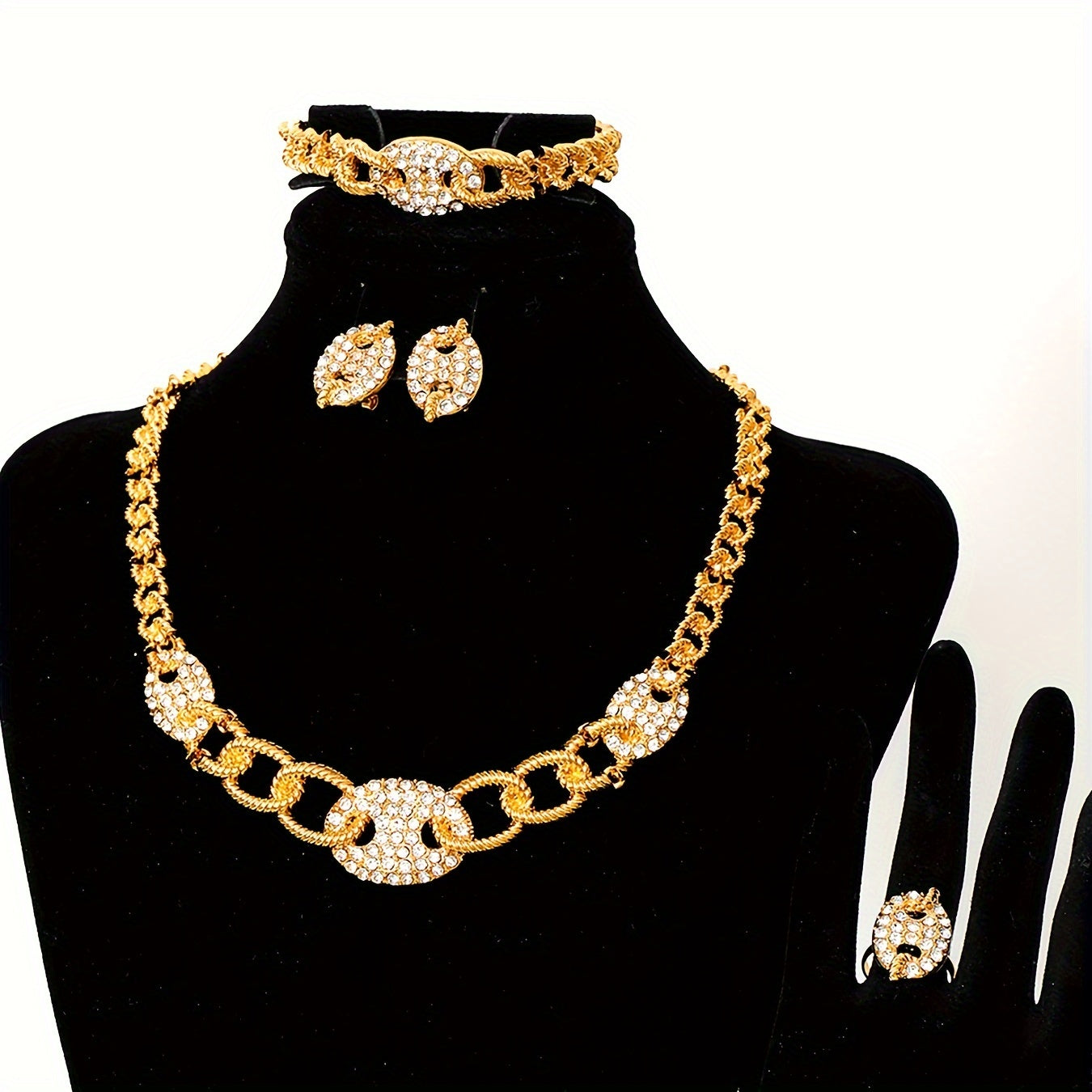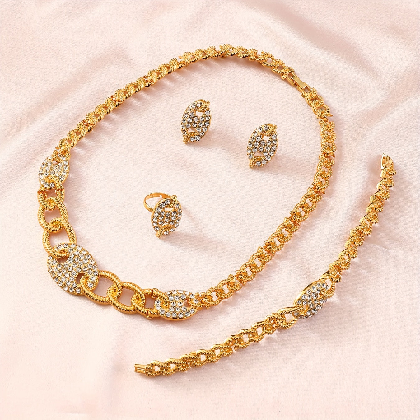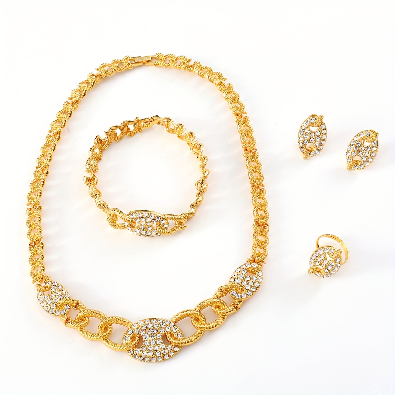 4-Piece Set 24K Gold-Plated Jewelry Set, Ethnic Luxurious Style, Middle Eastern Dubai Women's Wedding Accessory Kit, Necklace, Bracelet, Earrings, Ring for European African Brides