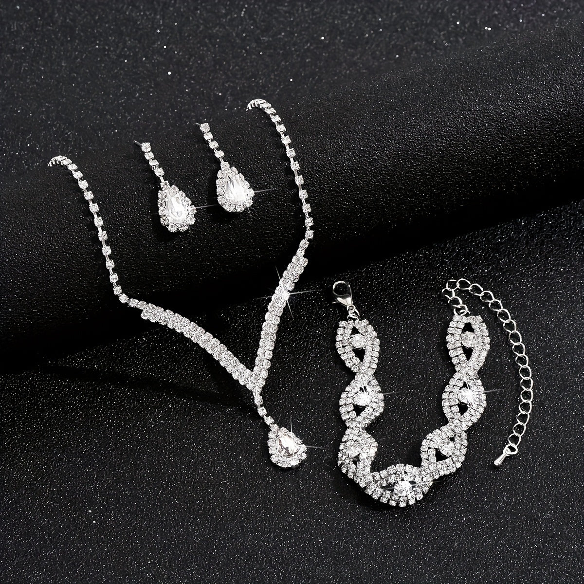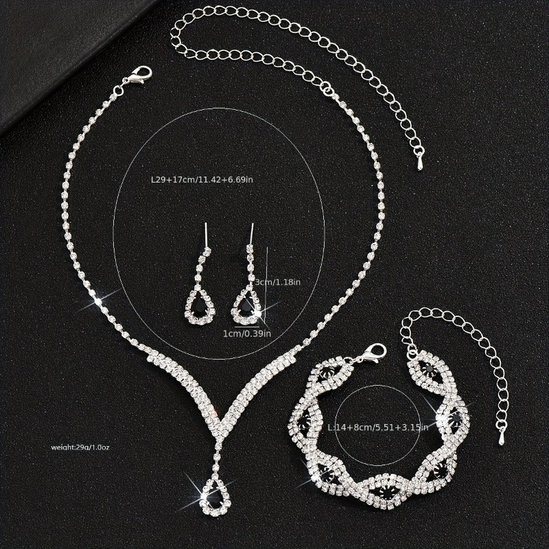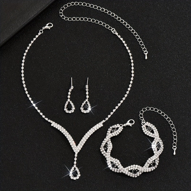 4 pieces/ set, retro and bohemian style, silver alloy drop design, blue zircon pendant necklace, bracelet and rivet set, wedding and party fashion accessories, creative gifts for ladies