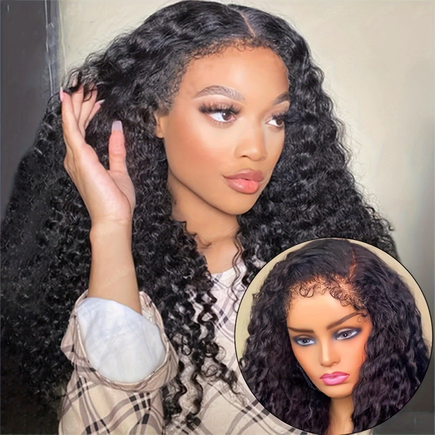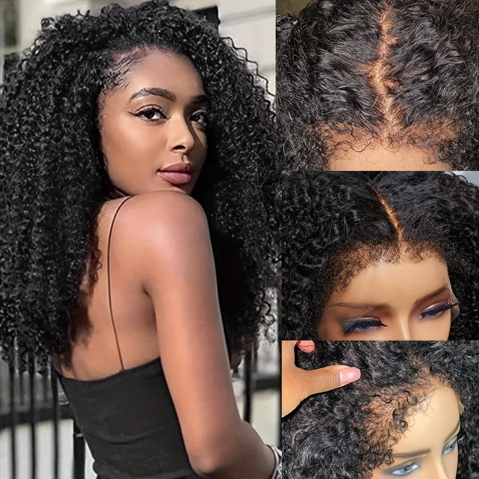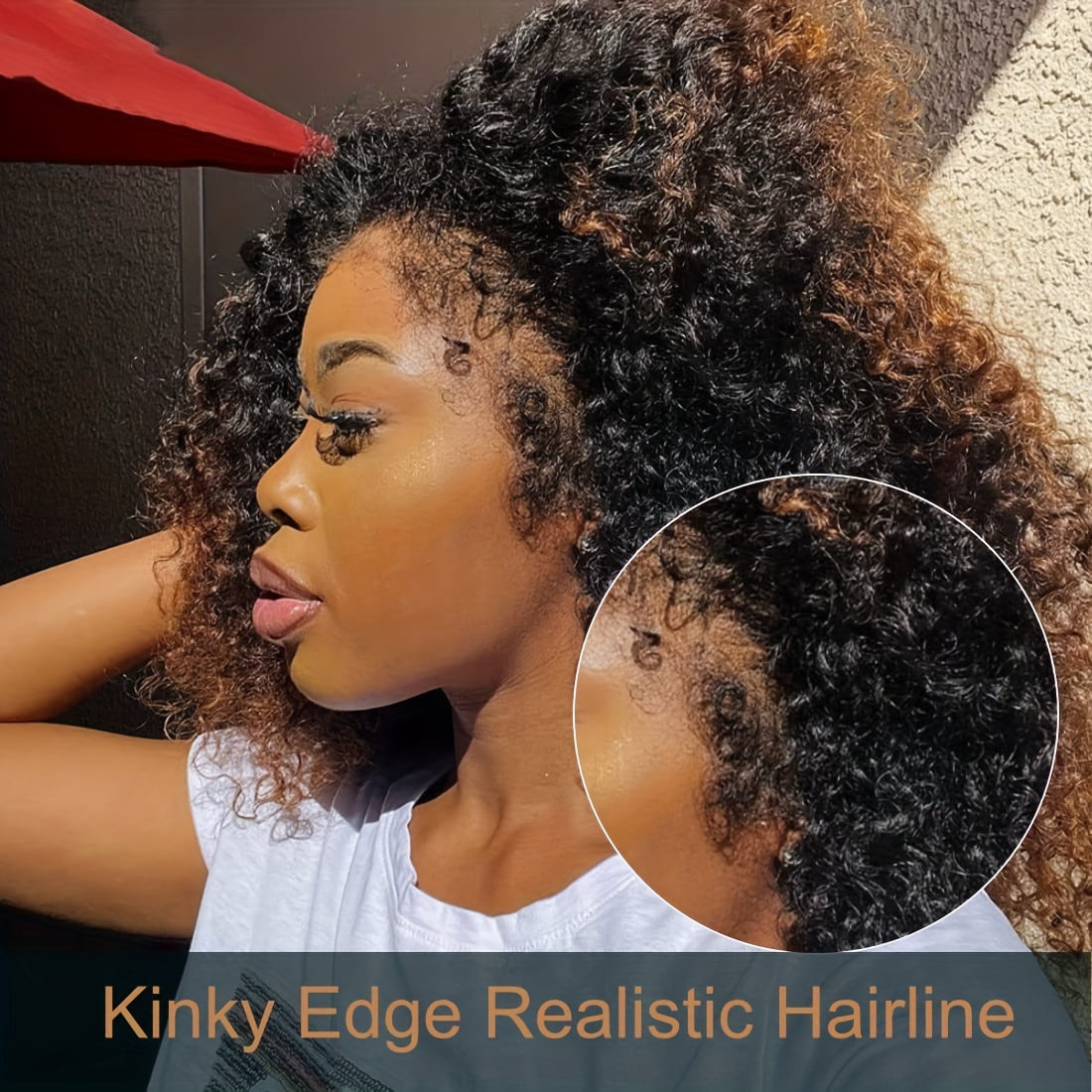 4C Kinky Curly 13X4 Lace Front Wigs With Kinky Edges Hairline Glueless HD Transparent Lace Frontal Wigs Pre Plucked, 24 Inch New Curly Baby Hair Human Hair Wigs Natural Color 150%