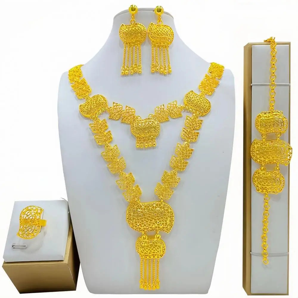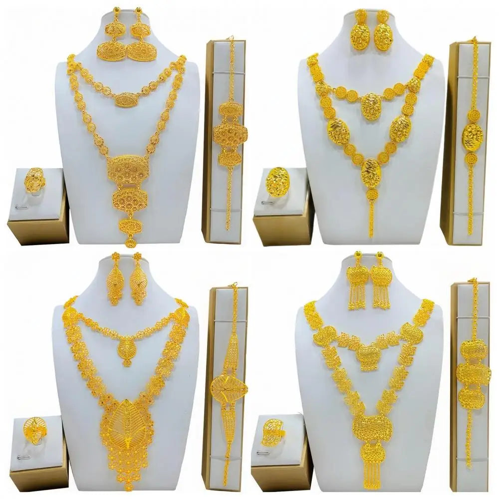 4PCS Ethnic Style Dubai Fake Gold Women Wedding 24k Gold Plated African Jwellery Bridesmaid Party Gift Bridal Dubai Jewelry Sets