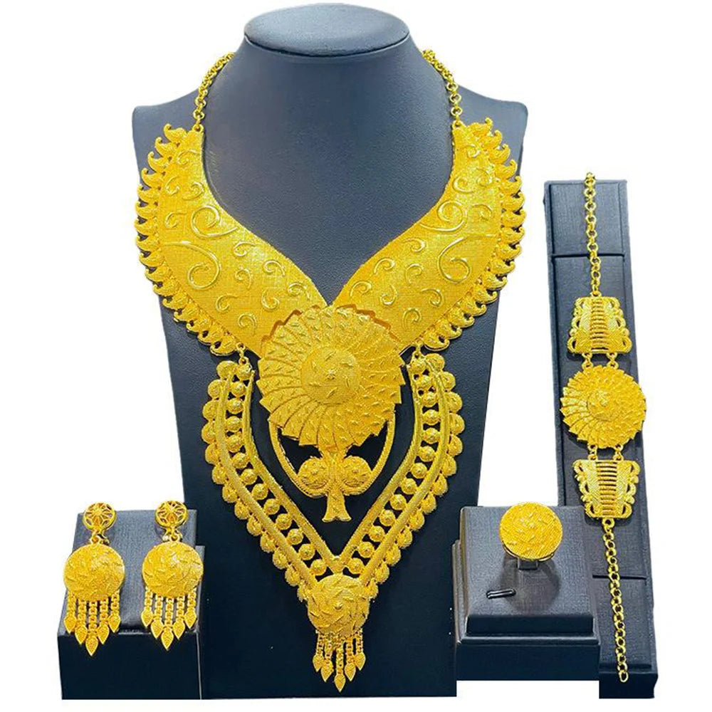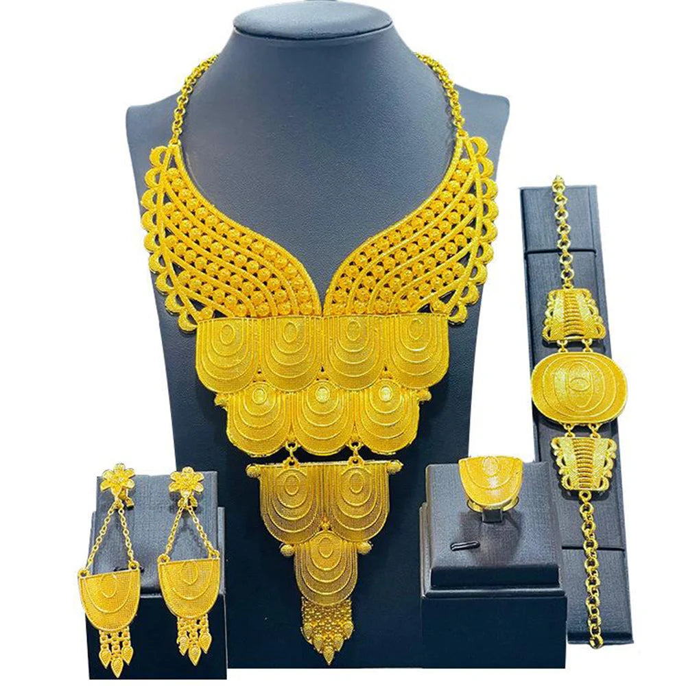 4PCS Ethnic Style High Quality Alloy 24k Gold Plated Dubai Jewelry Set African Middle East Women's Jewelry Necklace Bracelet