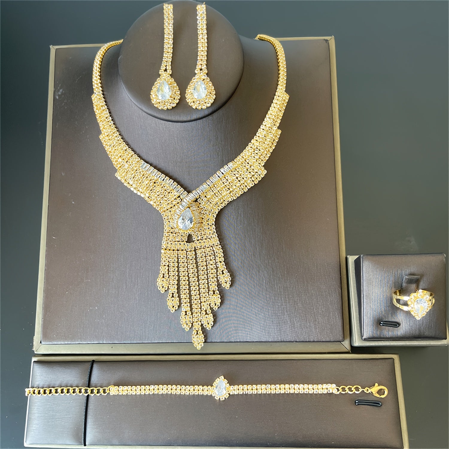 4pcs Exquisite Luxurious Multi-Layer Rhinestone Pendant Necklace Set, Bridal Wedding Glamorous Jewelry Ensemble, Elegant Style, Perfect Valentine's Day Gift Gifts For Eid