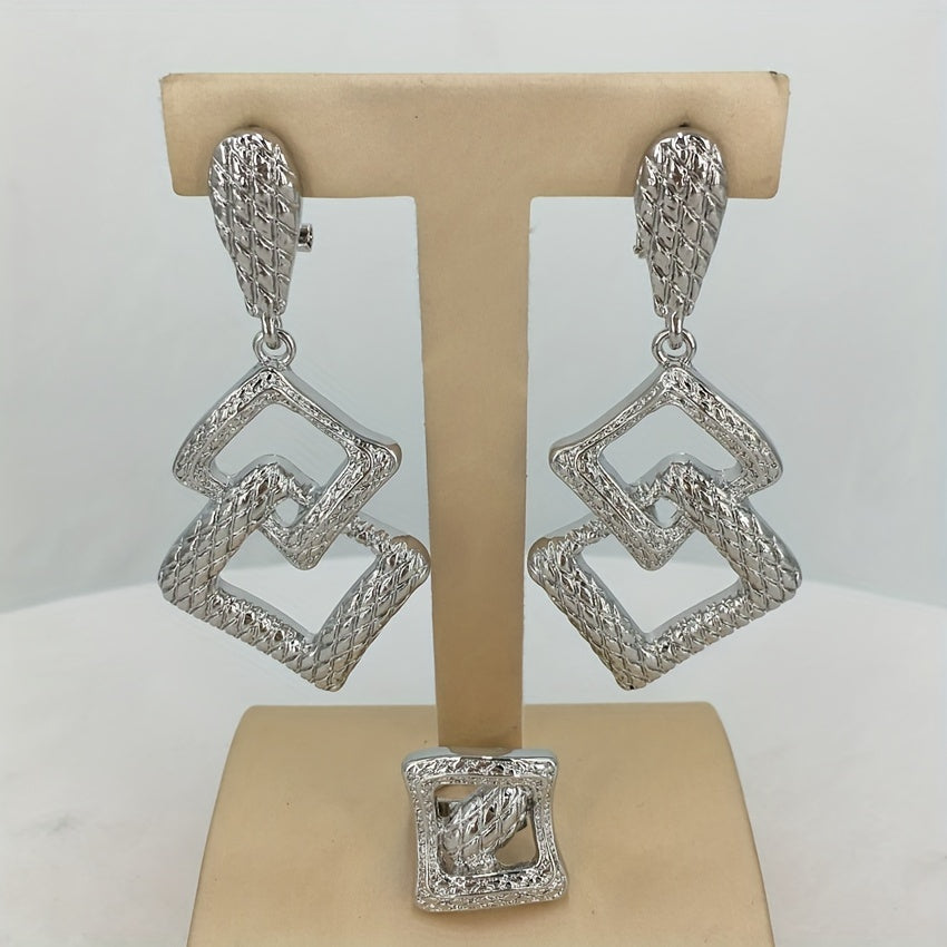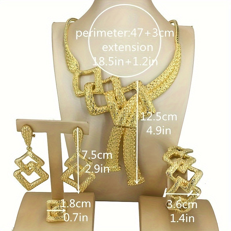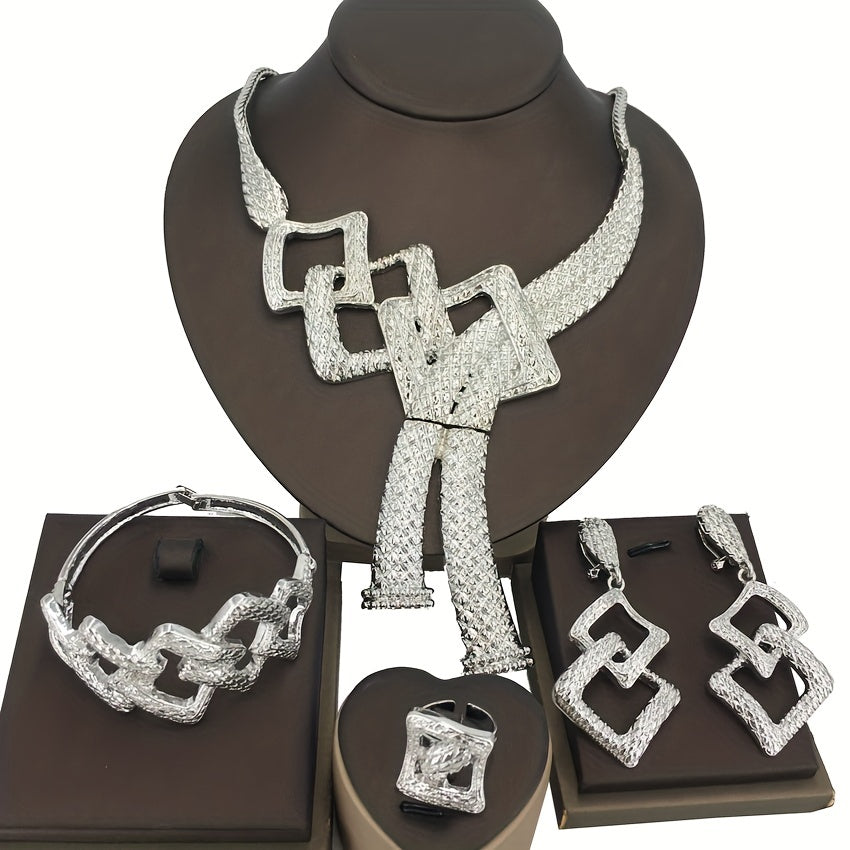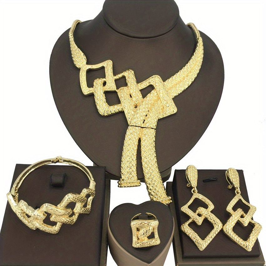 5-Piece Luxury Jewelry Set - Dazzling 18k Plated Earrings, Necklace, Bracelet & Ring - Exaggerated African Bride Glamour - Perfect for Special Occasions and Weddings