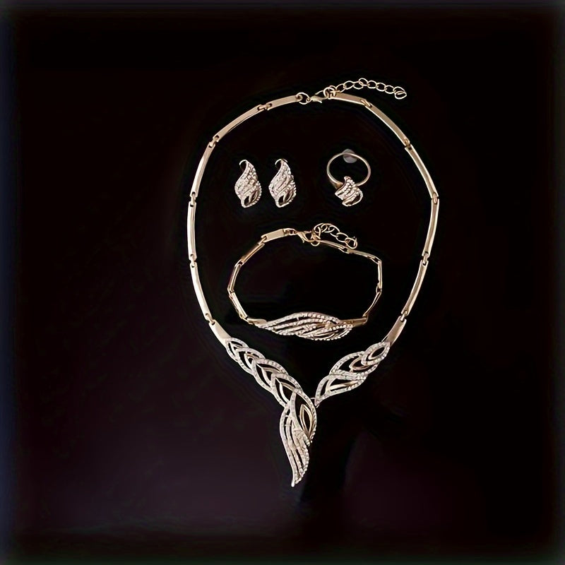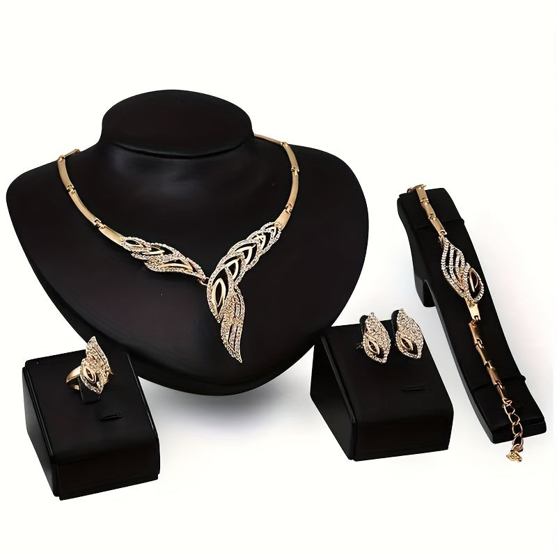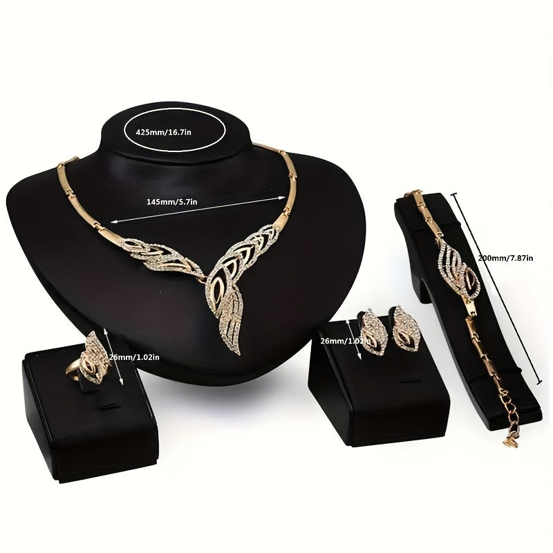 5pcs Earrings Necklace Bracelet Plus Ring Elegant Jewelry Set Inlaid Rhinestone Evening Party Decor Dupes Luxury Jewelry