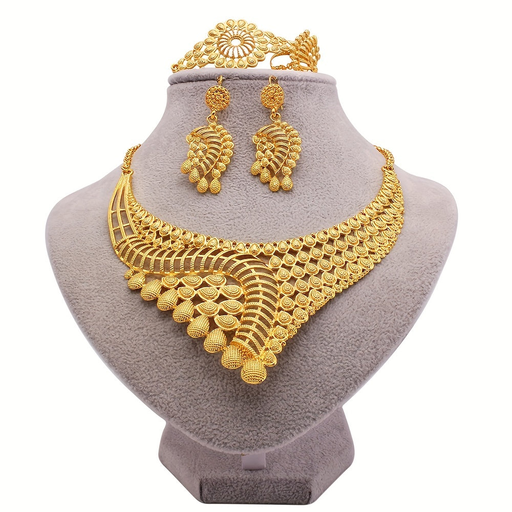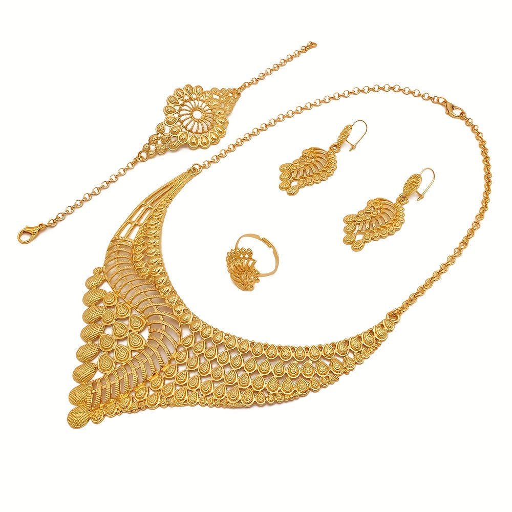 5pcs Earrings Necklace Bracelet Plus Ring Traditional Jewelry Set 24k Plated Tribal Wedding Accessories Gift For Your Love