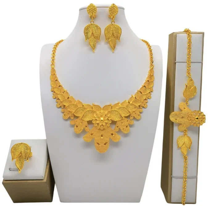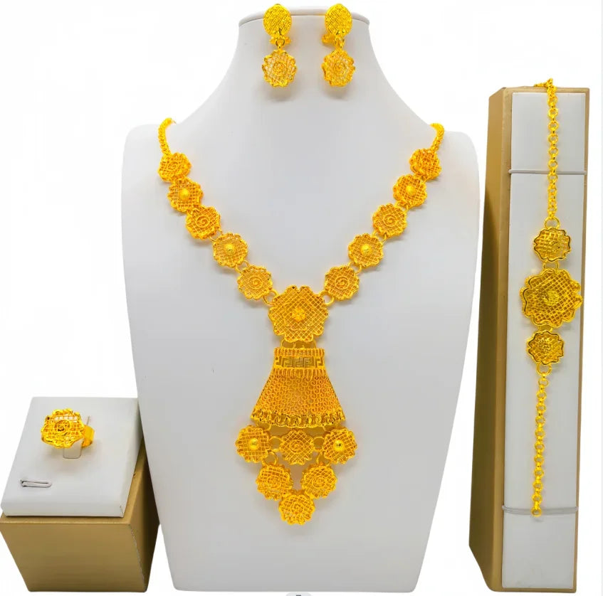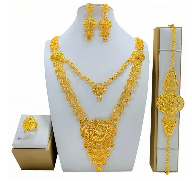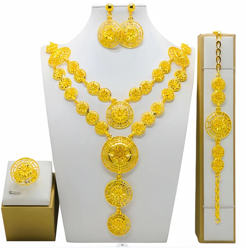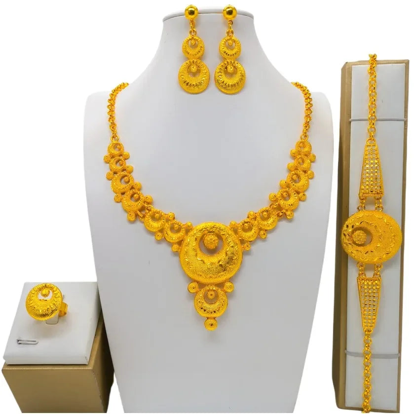 Africa 24K Gold Round Design Jewelry Set Wedding Dubai Necklace Earrings Ring Bracelet Women's Nigerian Indian Bride 4-pie