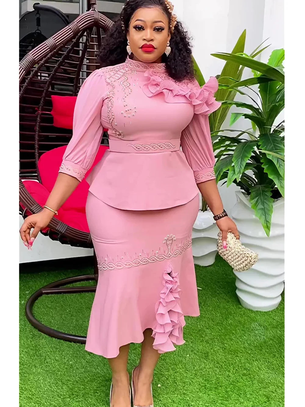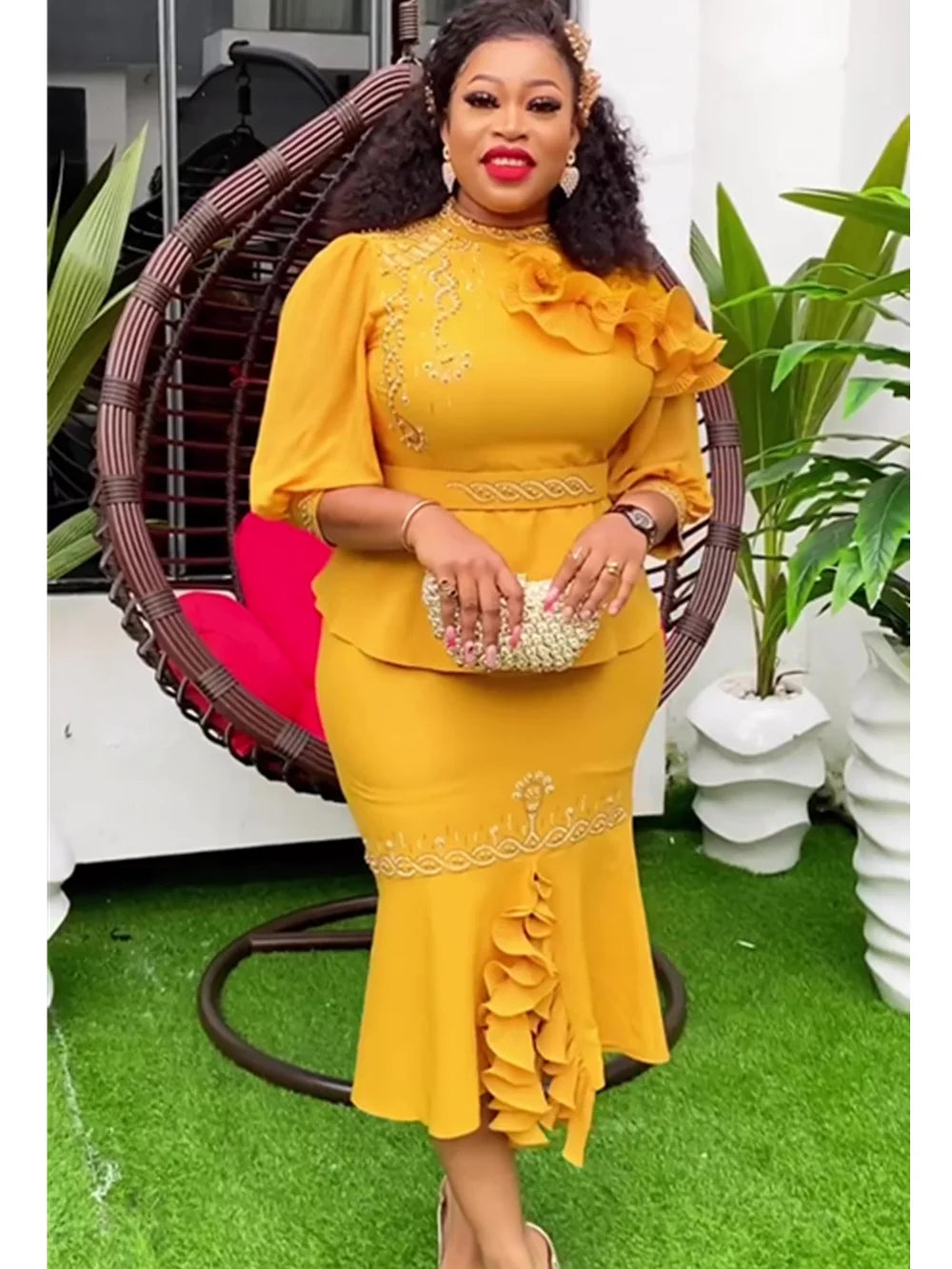 African Clothes for Women 2 PCS Sets Tops And Skirts Suits Dashiki Ankara Turkey Outfits Gown Plus Size Wedding Party Dresses