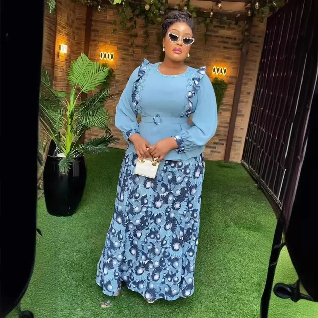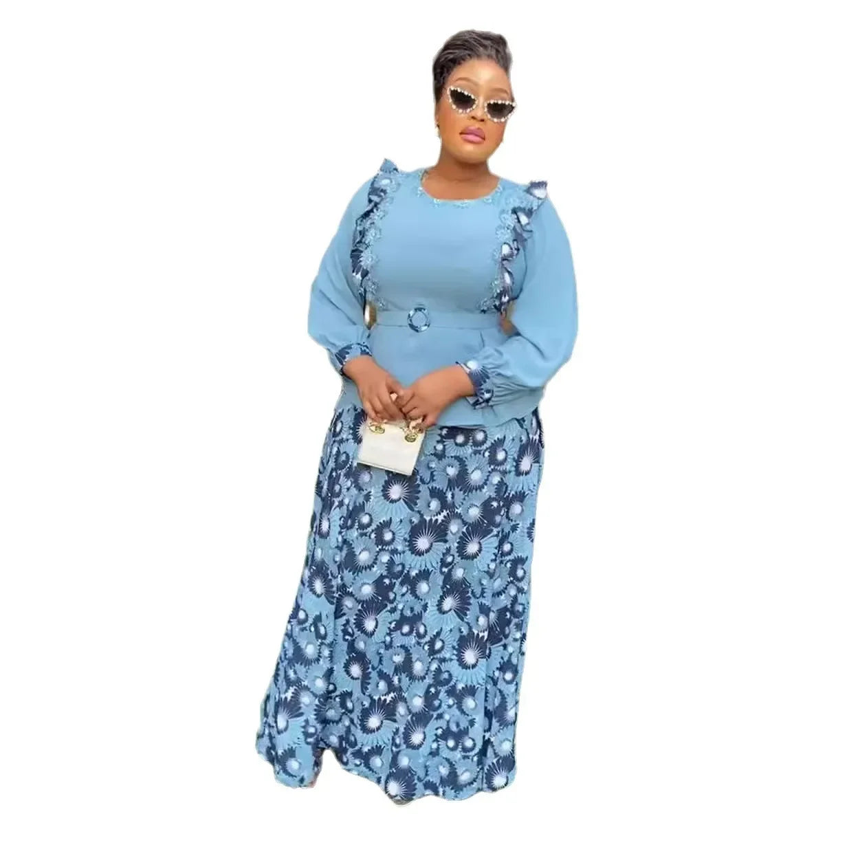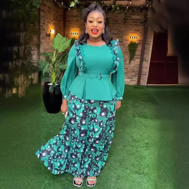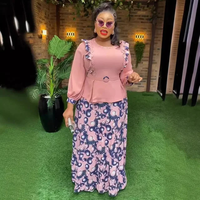 African Clothes for Women 2 PCS Sets Tops And Skirts Suits Dashiki Ankara Turkey Outfits Gown Plus Size Wedding Party Dresses