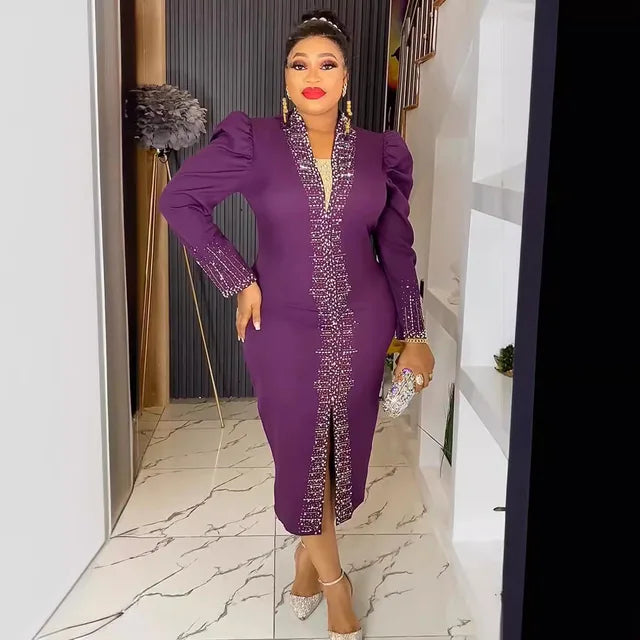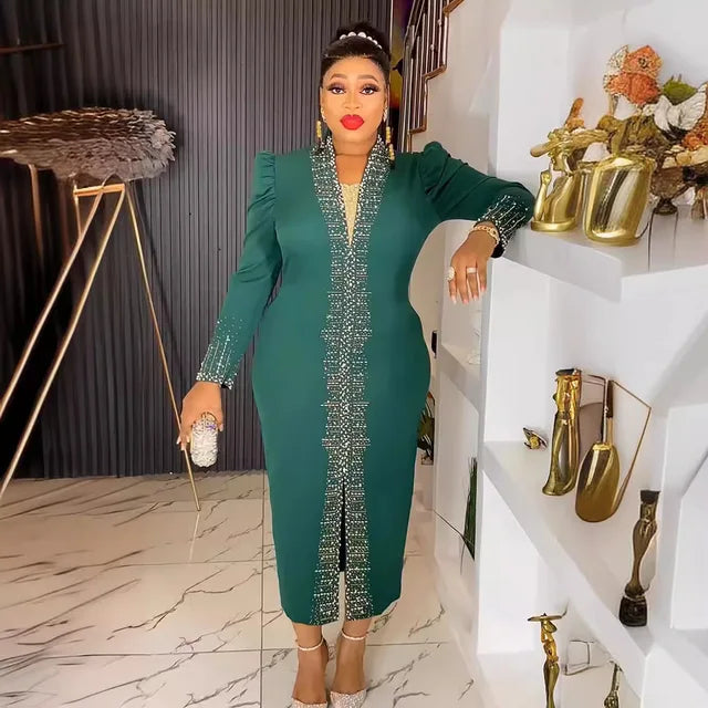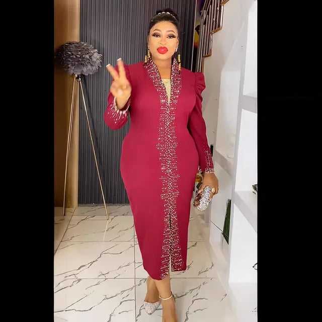 African Dresses For Women 2024 Elegant Long Sleeve Africa Wedding Party Long Dress Plus Size Evening Gown Ladies Clothing New