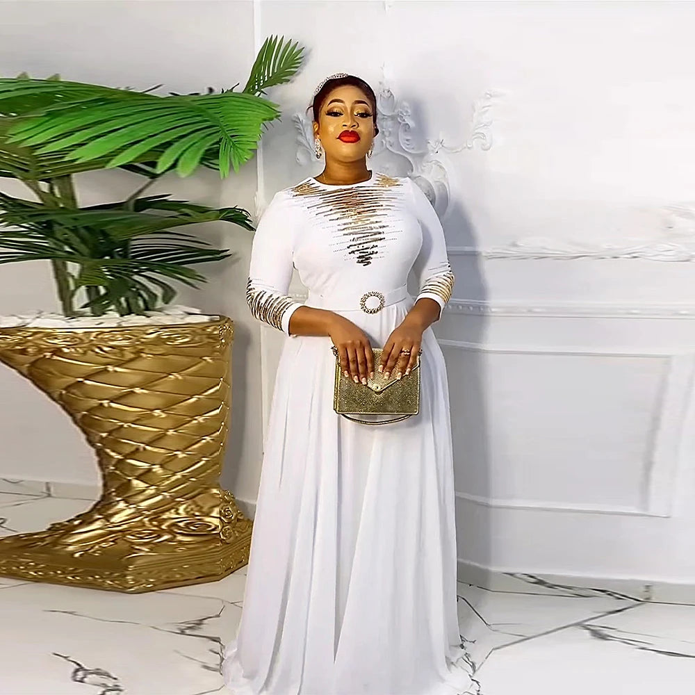 African Dresses for Women 2024 Plus Size Evening Party Long Dress Africa Clothing Elegant Kaftan Muslim Chiffon Maxi Dress