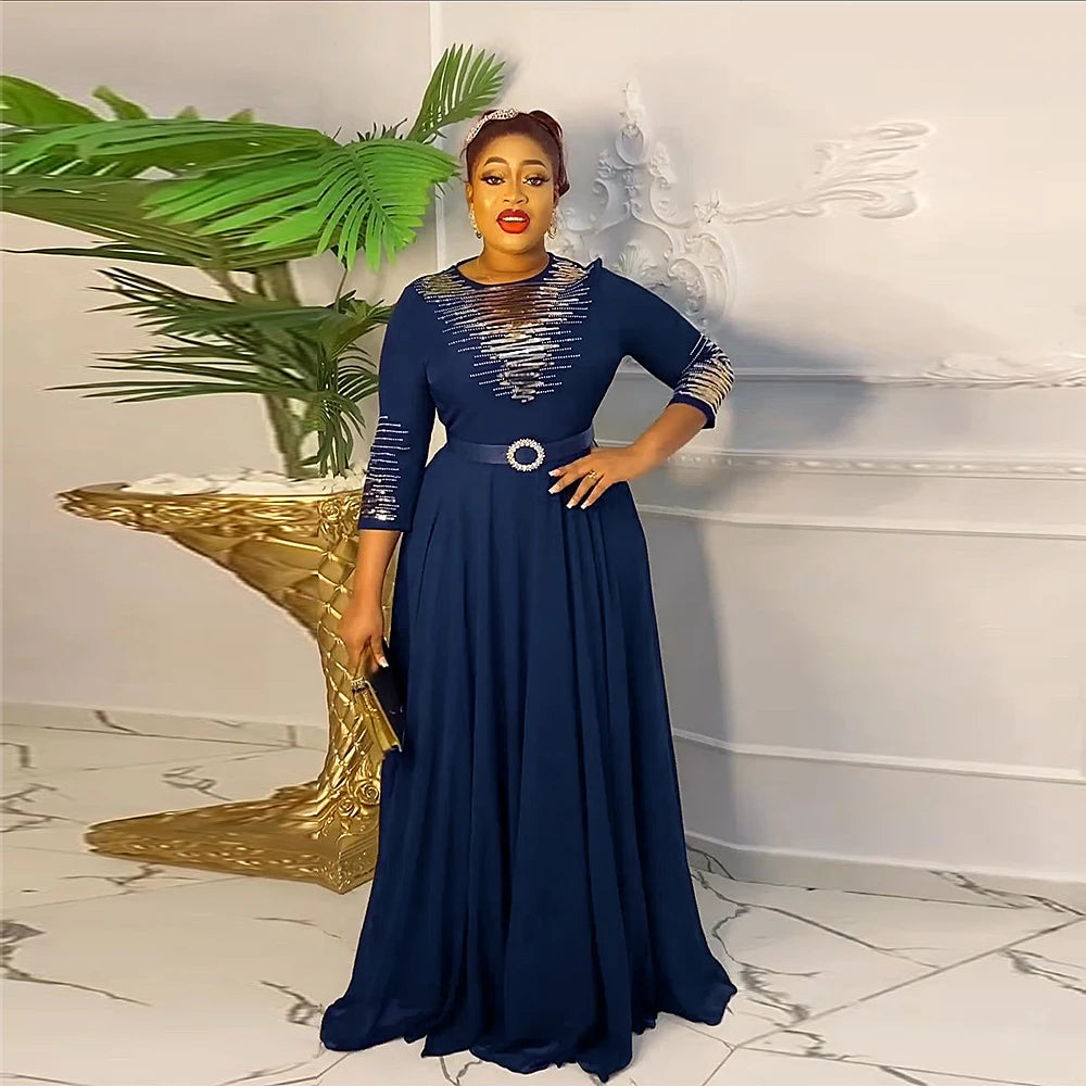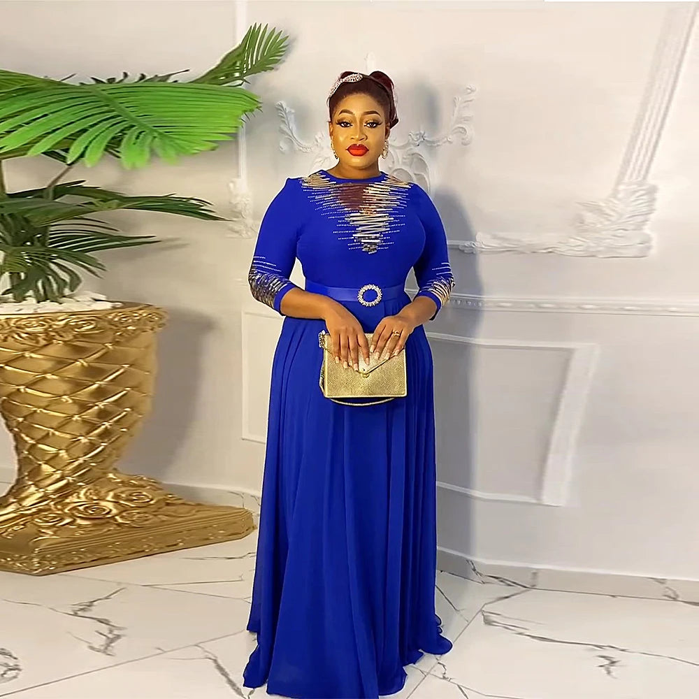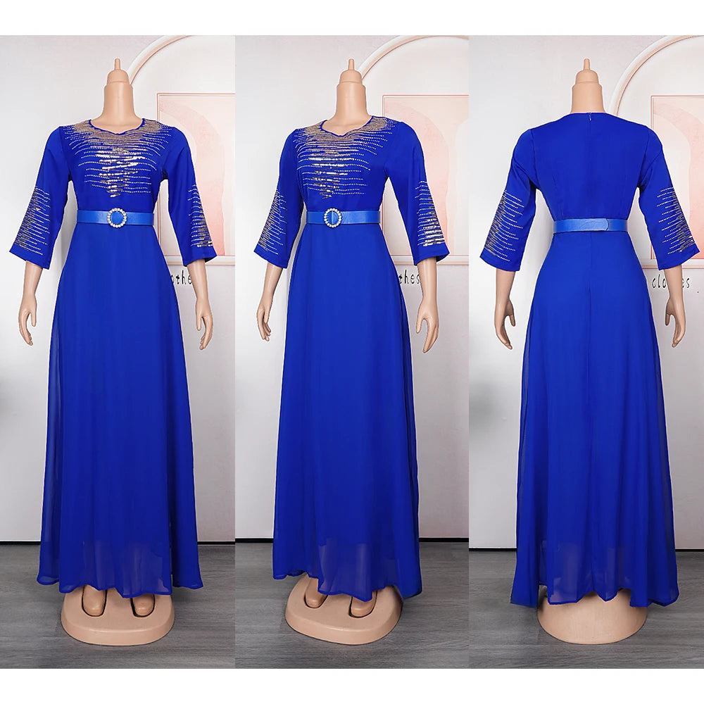 African Dresses for Women 2024 Plus Size Evening Party Long Dress Africa Clothing Elegant Kaftan Muslim Chiffon Maxi Dress