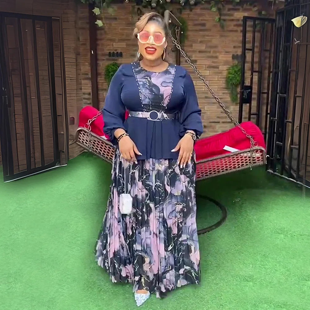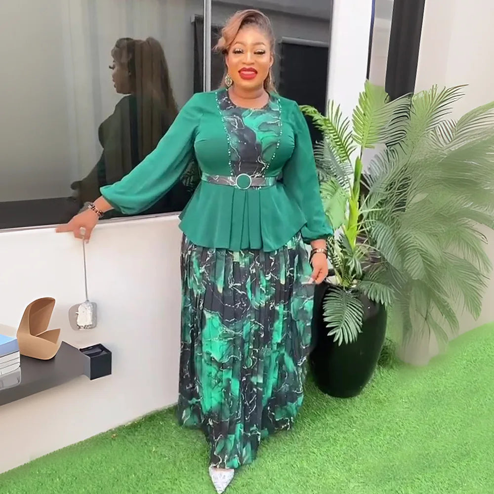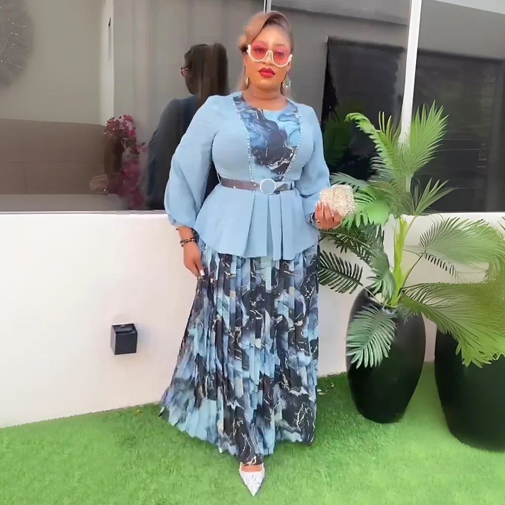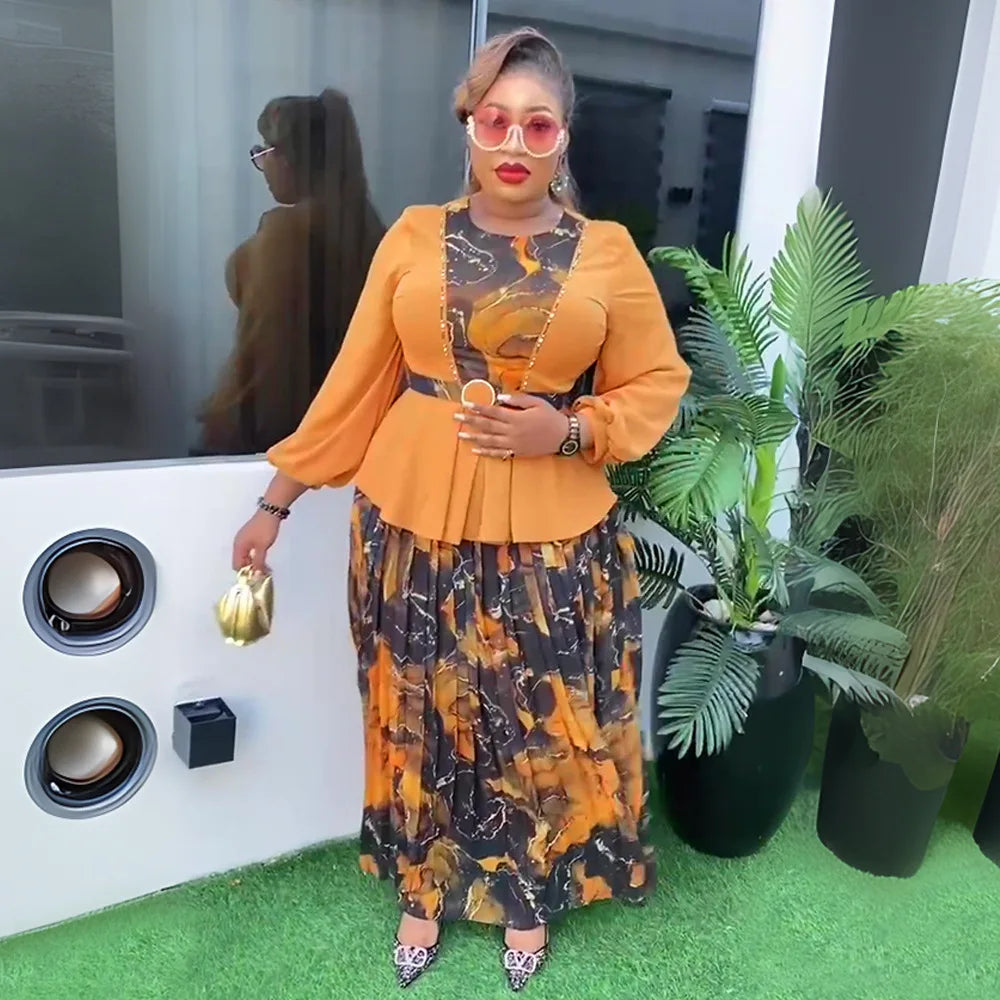 African Dresses for Women Plus Size Wedding Party Dress 2 PCS Sets Tops and Skirts Suits Dashiki Ankara Turkey Outfits Gown