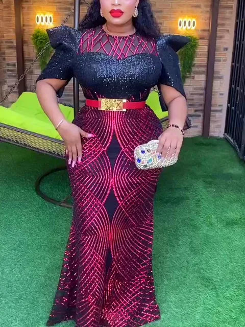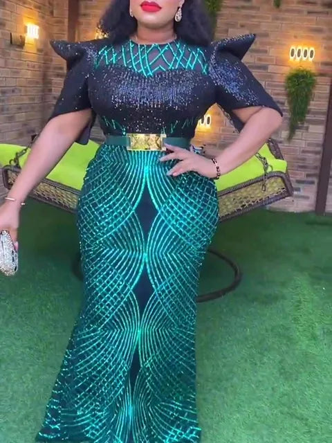 African Luxury Sequin Evening Dresses for Women Elegant Turkey Wedding Party Long Dress Ankara Outfits Gown Ladies Clothing