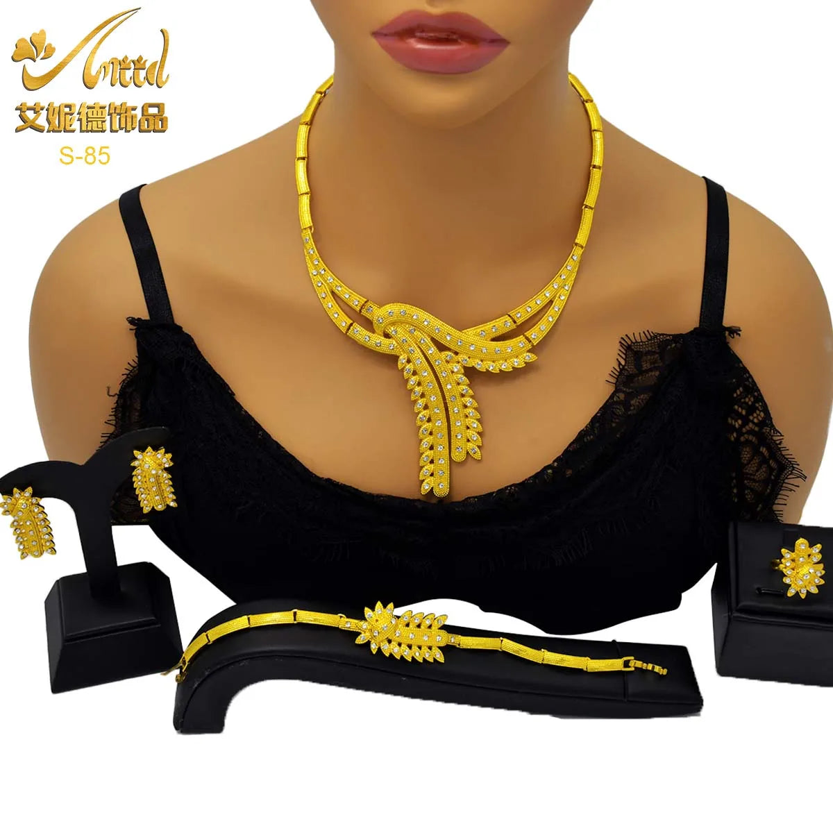 ANIID Dubai Luxury Big Pendant Necklace Sets For Women African 24k Gold Color Indian Arab Wedding Bridal Crystal Jewelry Sets