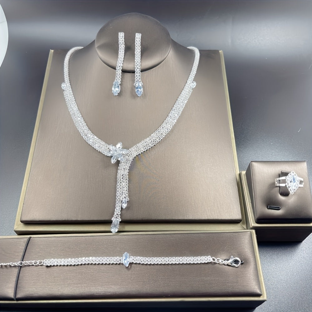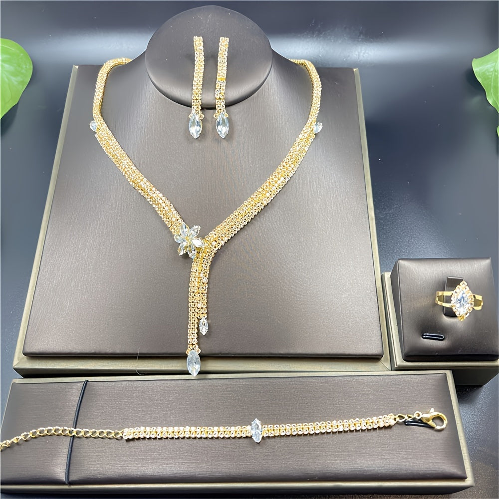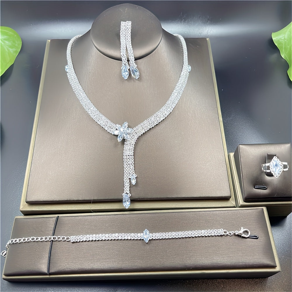 Bohemian 4-Piece Jewelry Set - Crystal Tassel Necklace, Earrings, Bracelet, and Ring Combo for Bridal, Wedding, Party, Music Festival - No Plating Boho Street Style Accessory for Valentine's Day