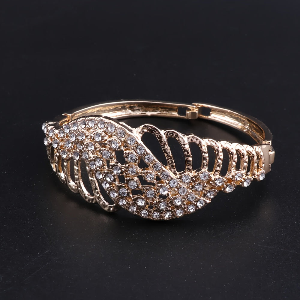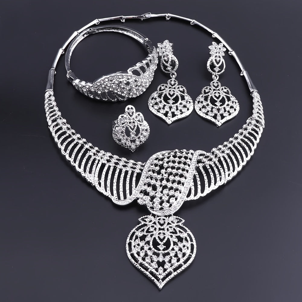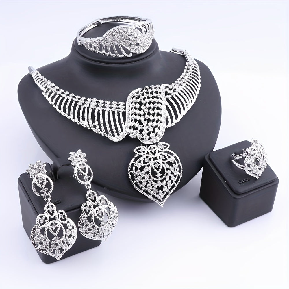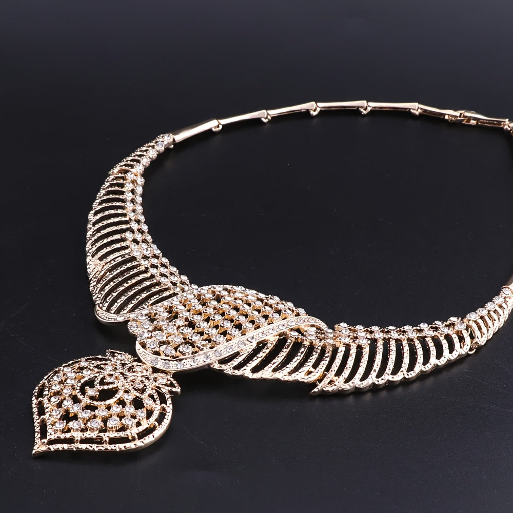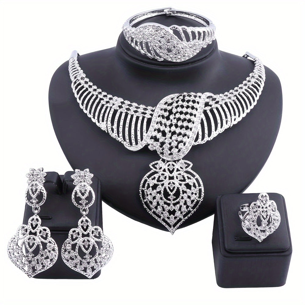 Luxury Gold Plated Crystal Heart-Shaped Pendant Necklace, Earrings, Ring Set, Perfect For Women's Gift, Party, Wedding, And Everyday Wear