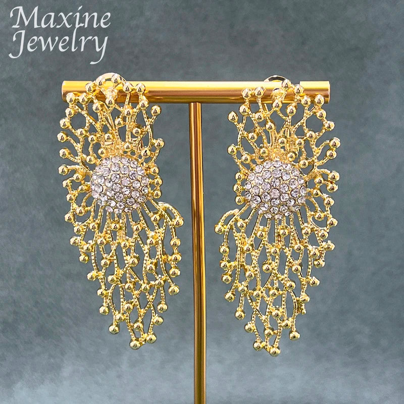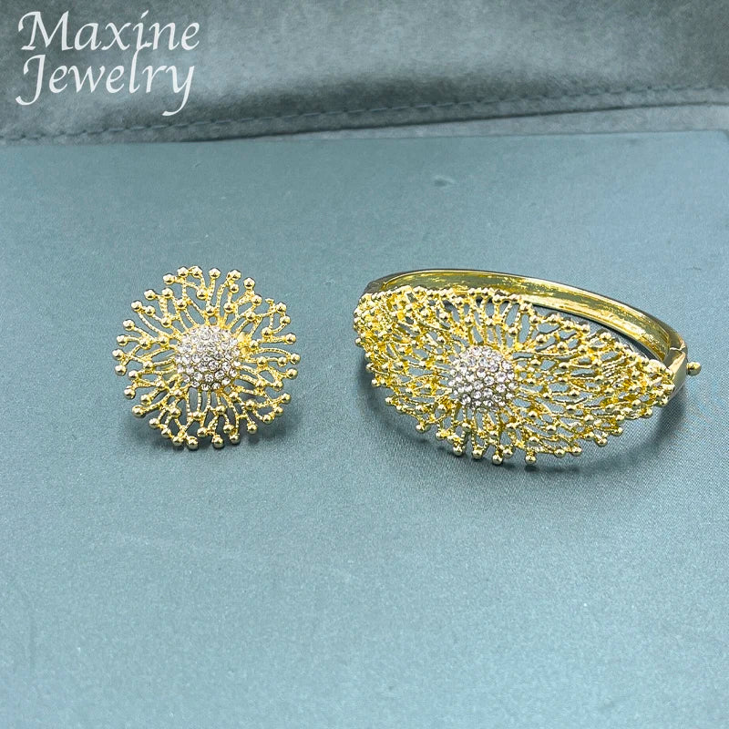 Luxury Original 18K Gold Plated Jewelry Set for Women Trendy Golden Necklace Earring Bracelet Ring Party Dubai Wedding Gifts