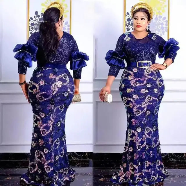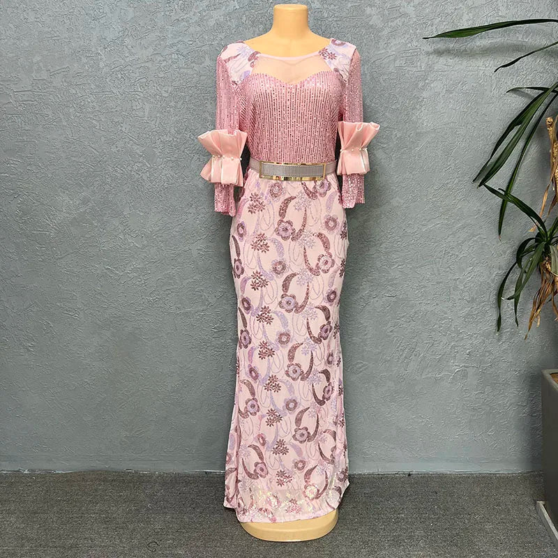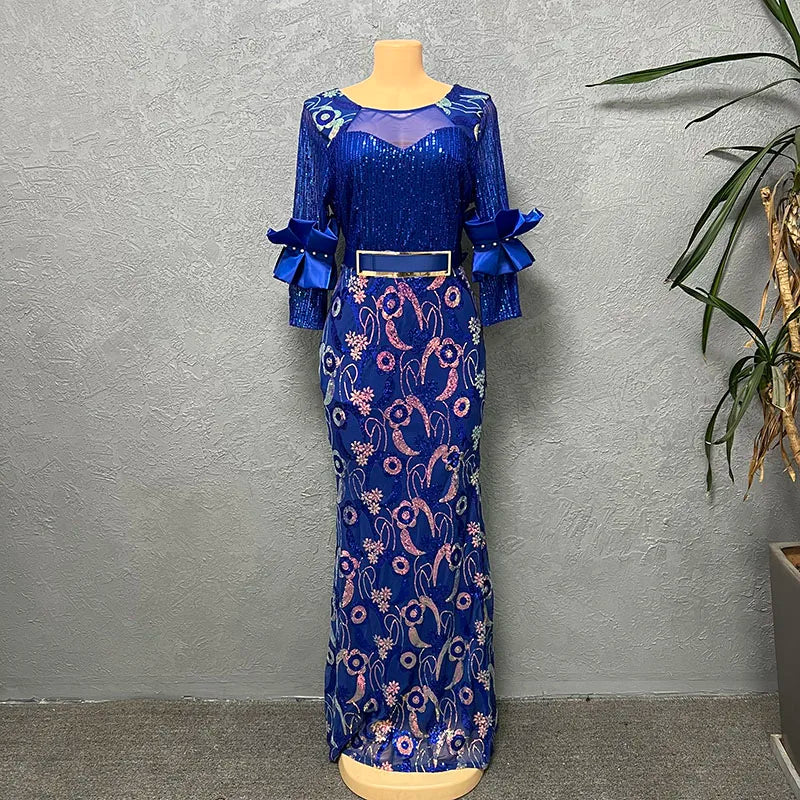 New Elegant African Dresses For Women Sequin Luxury Evening Wedding Party Polyester Long Gown Bodycon Mermaid Dress Ladies Wear