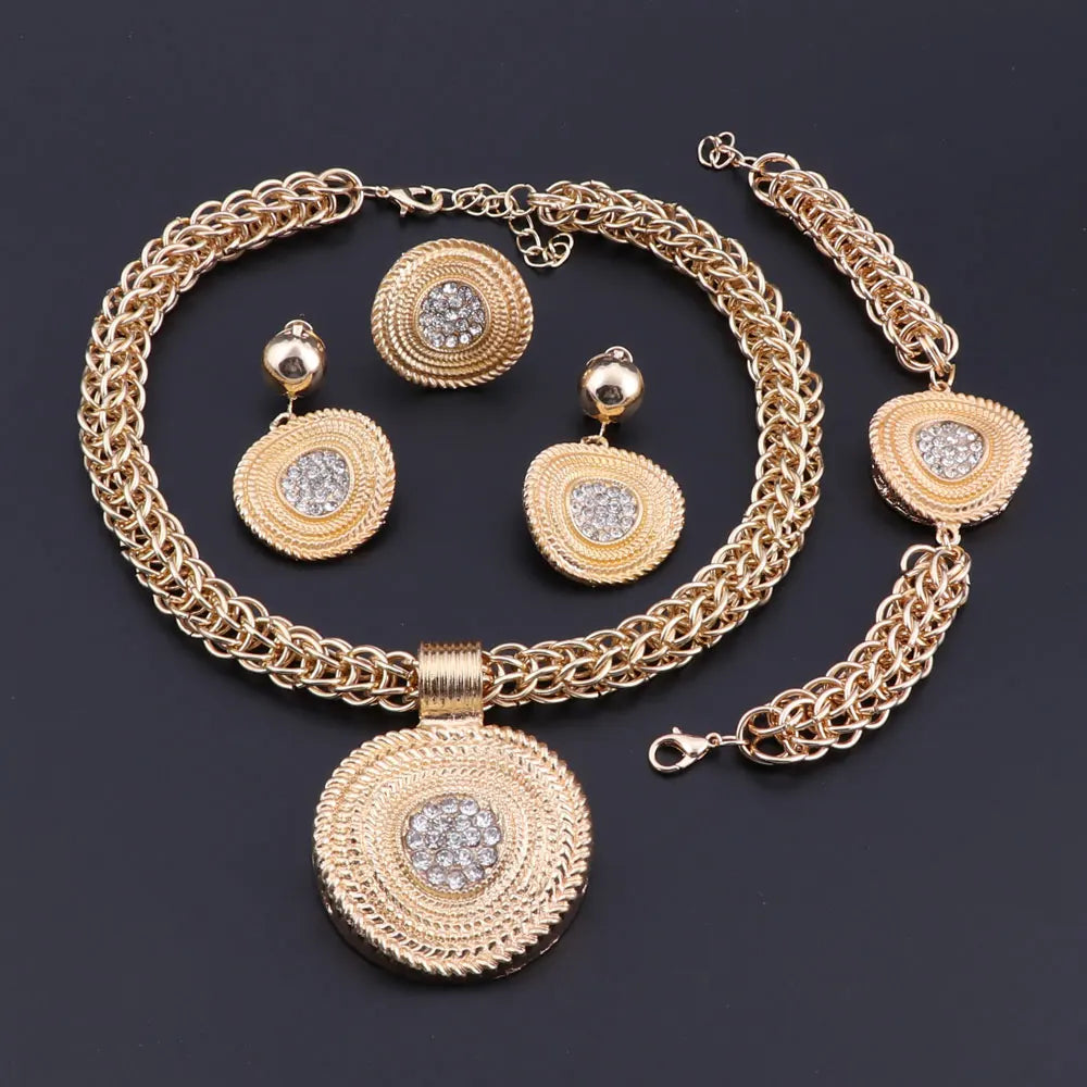OEOEOS High Quality Women Necklace Bangle Earring Ring Fine African Jewelry Sets Beads Gold-color Dubai Plated Fashion Wedding