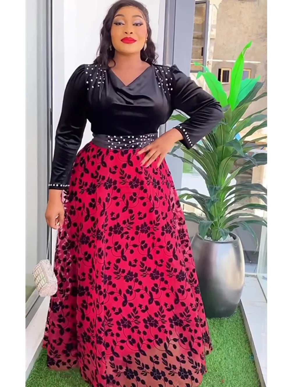Plus Size African Party Dresses for Women 2024 New Fashion Dashiki Ankara Velvet Wedding Gowns Elegant Turkey Muslim Maxi Dress