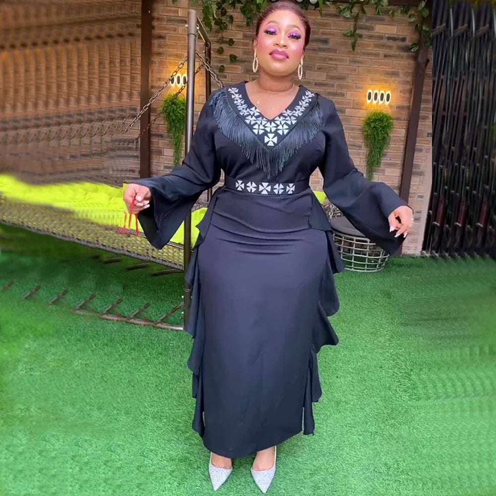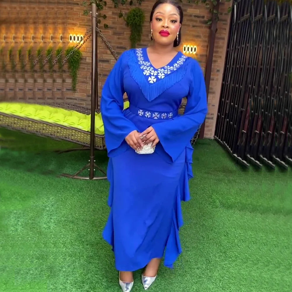 Plus Size African Party Long Dresses for Women 2024 New Dashiki Ankara Tassels Evening Gowns Turkey Outfits Robe Africa Clothing