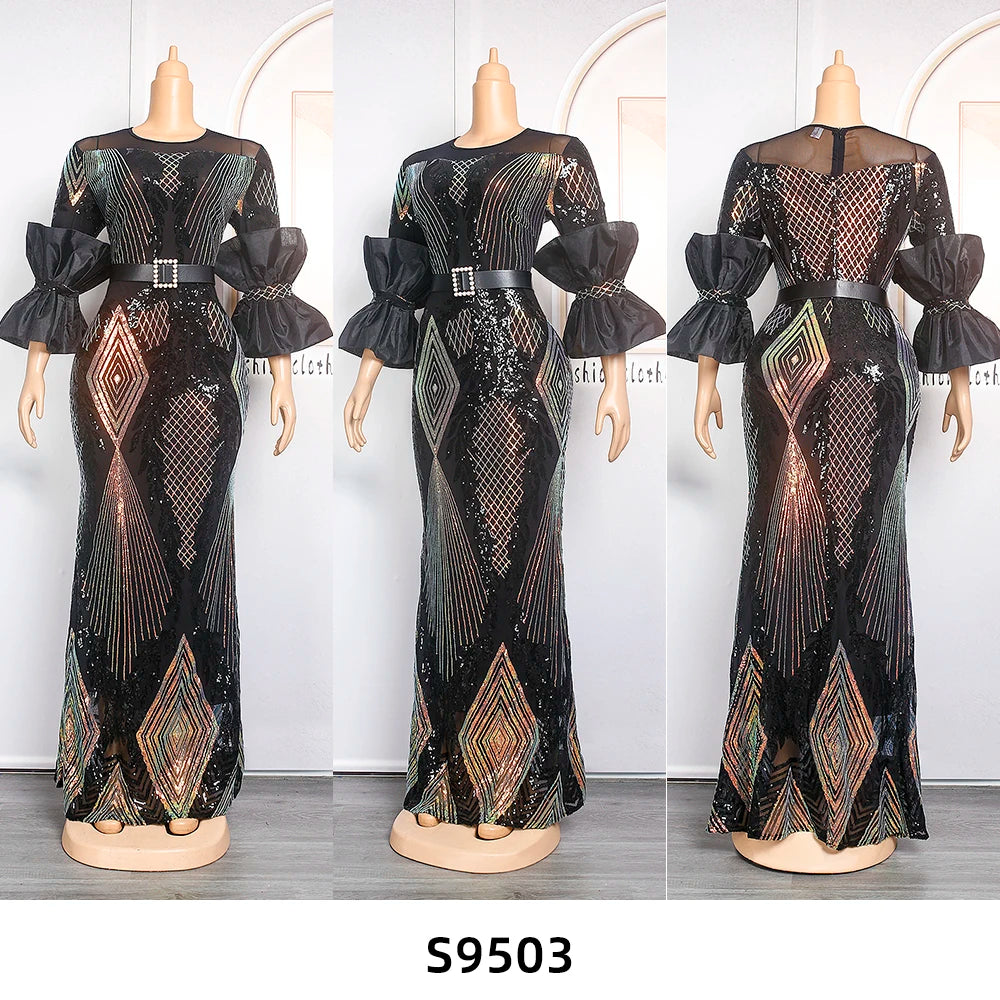 Plus Size Evening Dresses Women 2024 New Dashiki African Sequin Party Long Dress Ankara Robe Elegant Turkey Gown African Clothes
