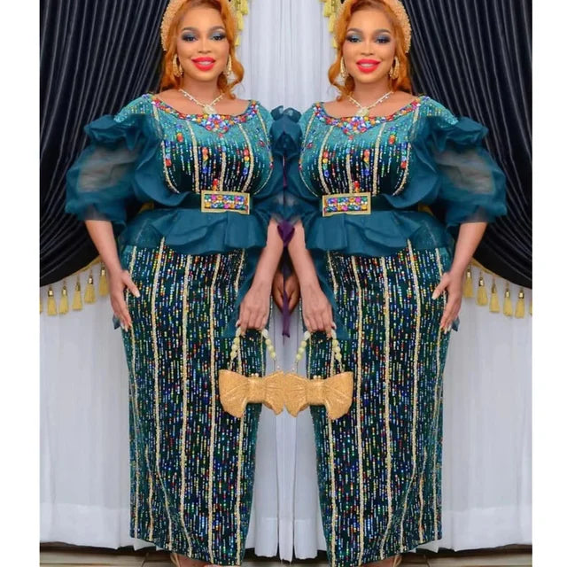 Plus Size Luxury Velvet Wedding Party Dresses Women 2024 African Evening Gown Dashiki Ankara Turkey Outfits Robe Africa Clothing