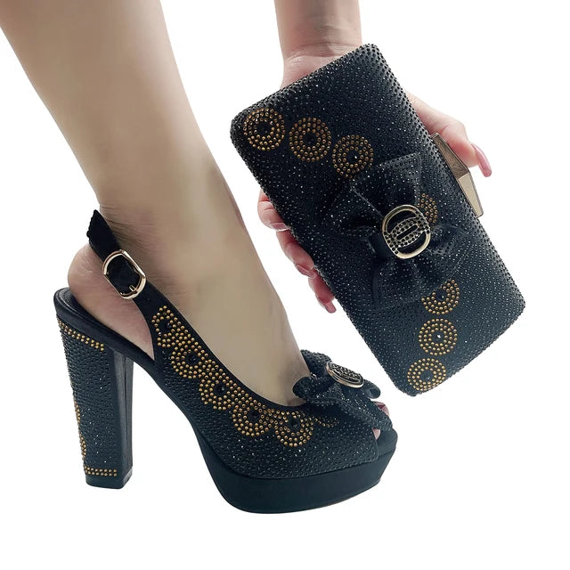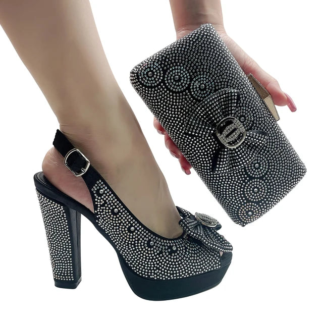 Royal Blue Italian Shoes and Bags Matching Set Pumps Summer Sandals Women Ladies Heels Shoe with Purse Set Platform Heels Woman