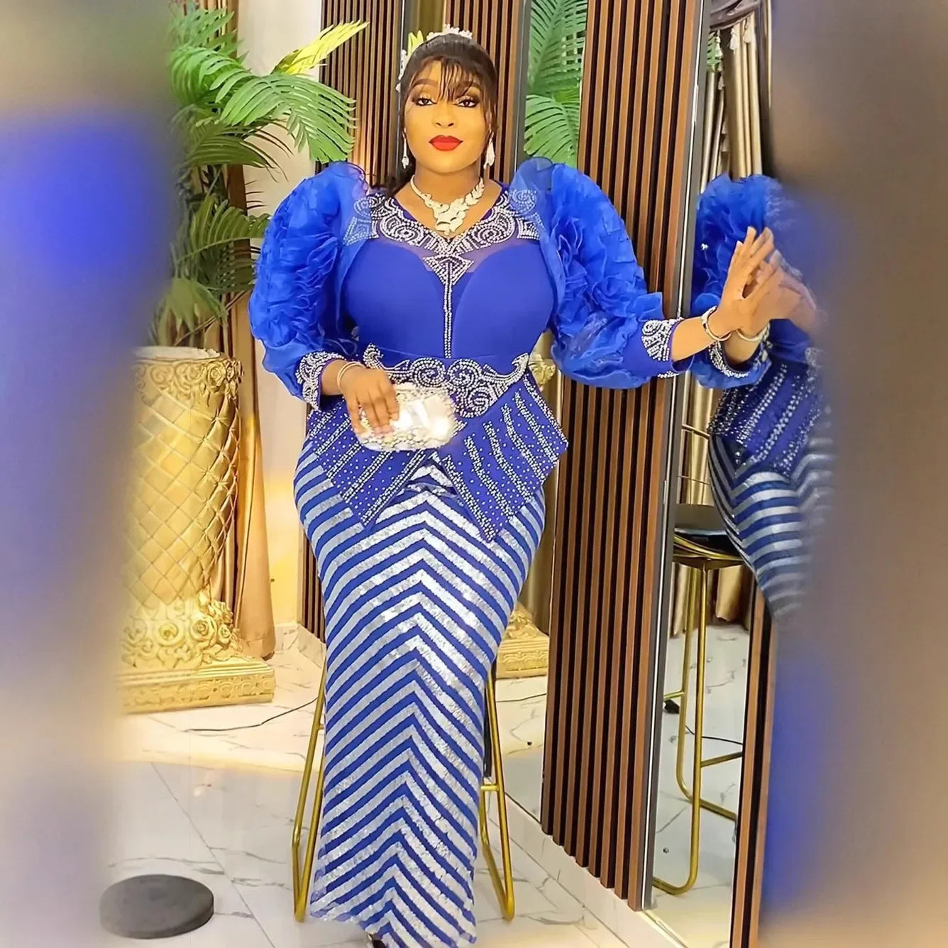 Sequin Plus Size African Party Dresses for Women Fashion Dashiki Ankara Wedding Evening Gown Elegant Christmas Muslim Maxi Dress